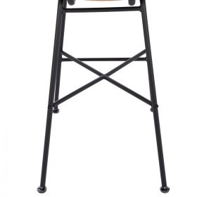 Μοντέρνο σκαμπό εξωτερικού, αλλά και εσωτερικού χώρου, κατασκευασμένο από μεταλλικό σκελετό σε μαύρη απόχρωση και πόδια από μασίφ σίδερο και επενδυμένο με πλεκτό wicker σε μπεζ απόχρωση.