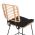 Η επένδυση είναι από συνθετικό Rattan σε πλέξη wicker. Στα περισσότερα έπιπλα κήπου και γενικά σε έπιπλα για εξωτερικούς χώρους χρησιμοποιείται συνθετικό Rattan από PVC, δηλαδή τεχνητές ίνες υψηλής ποιότητας. Αυτό δίνει στην κατασκευή εξαιρετική αντοχή και ανθεκτικότητα σε ακραίες συνθήκες ζέστης ή κρύου.