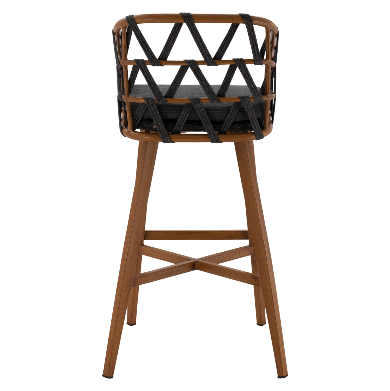 Η πλάτη του σκαμπό είναι επενδυμένη με σχοινί OLEFIN. Η ίνα olefin είναι μια συνθετική ίνα κατασκευασμένη από διάφορα πλαστικά υλικά. Το υλικό που είναι κατασκευασμένο από αυτή την ίνα είναι ισχυρό, δεν ξεβάφει, και είναι ανθεκτικό στην μούχλα, την τριβή και το ηλιακό φως, επειδή διαθέτει προστασία από την υπεριώδη ακτινοβολία που προστίθεται στη διαδικασία κατασκευής. Τα πιο σημαντικά χαρακτηριστικά, ωστόσο, είναι ότι είναι αδιάβροχο και ανθεκτικό στους λεκέδες (αλέκιαστο).