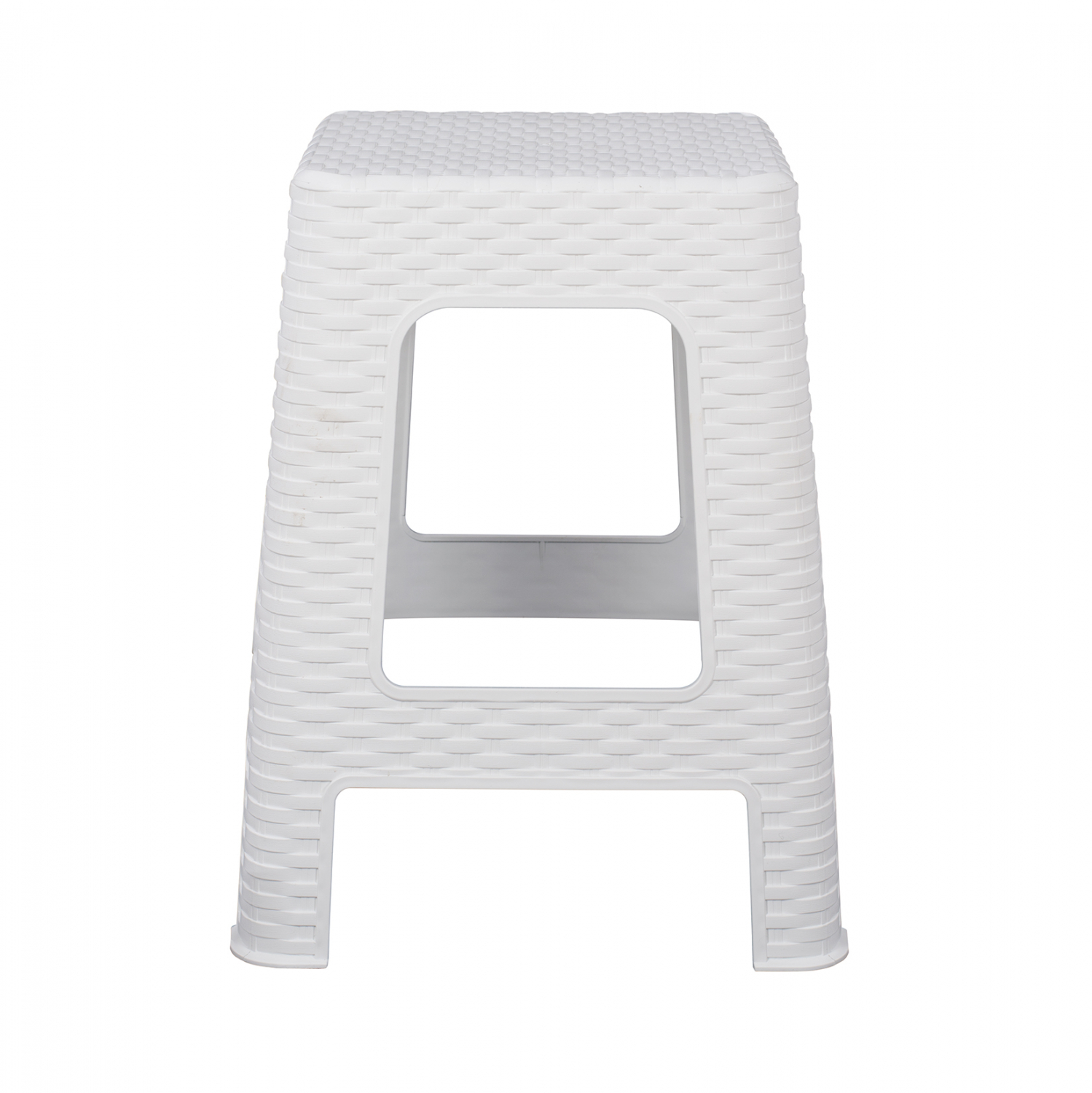 Σκαμπώ πλαστικό με πλέξη ραττάν, τετράγωνο γενικής χρήσης. Είναι κατασκευασμένο από συνθετικό πολυπροπυλένιο υψηλής ποιότητας και αντοχής.