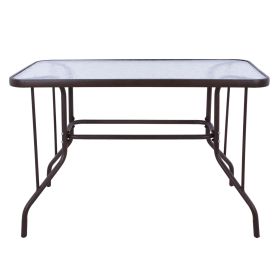 Το τραπέζι ADAM εξωτερικού χώρου έχει ΚΑΦΕ μεταλλικό σκελετό και γυάλινη θολή επιφάνεια! Πρόκειται για πολύ δημοφιλές τραπέζι που δεν λείπει σχεδόν από κανέναν μπαλκόνι ή κήπο. Το ADAM είναι ορθογώνιο με γωνίες στρογγυλεμένες ενώ το γυαλί της επιφάνειας είναι ενισχυμένο.