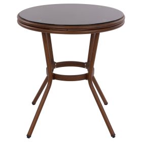 Τραπέζι αλουμινίου bamboo look εξωτερικού χώρου με textilene στην επιφάνειά του και ενσωματωμένο τζάμι.