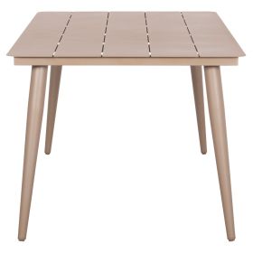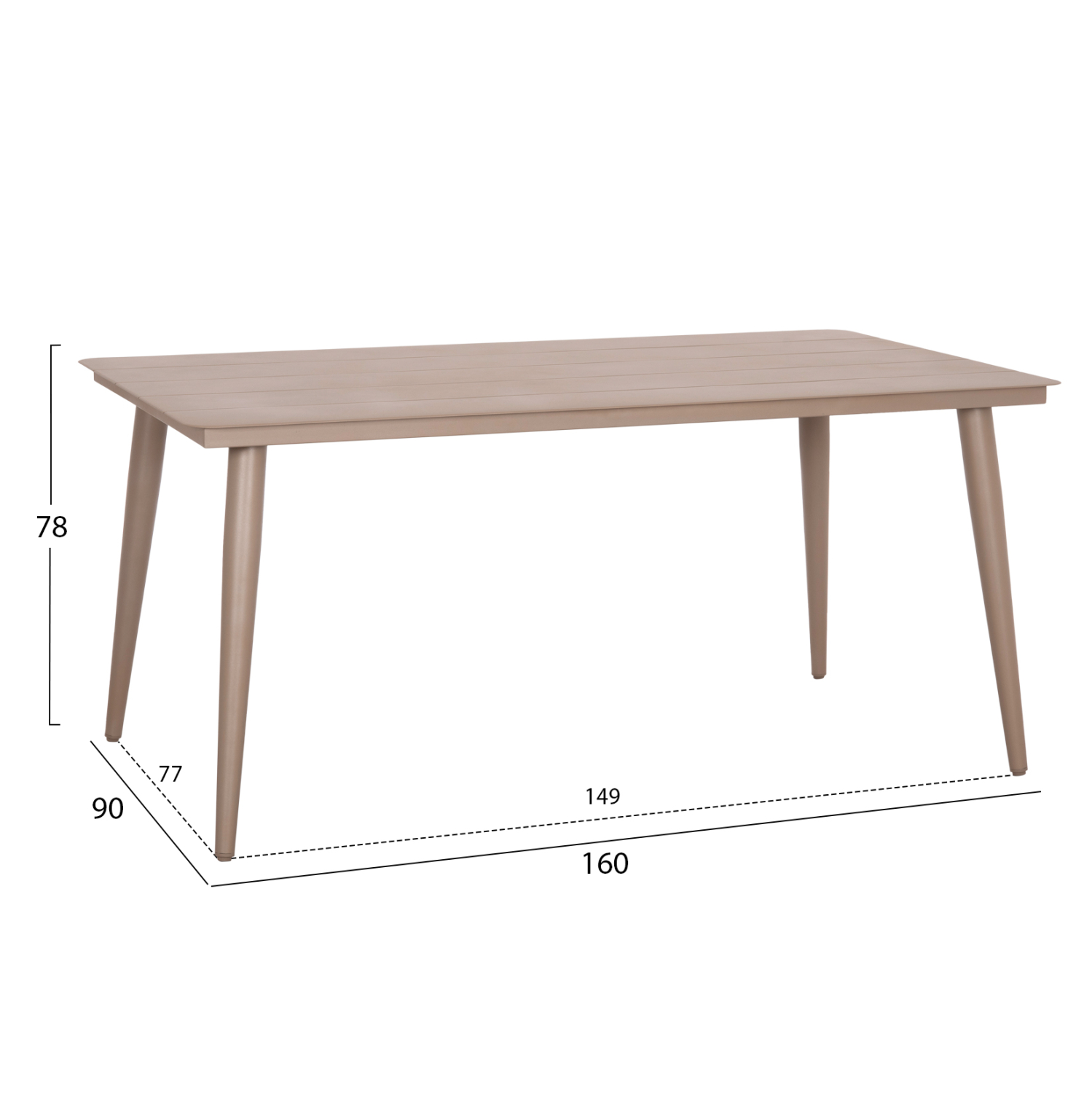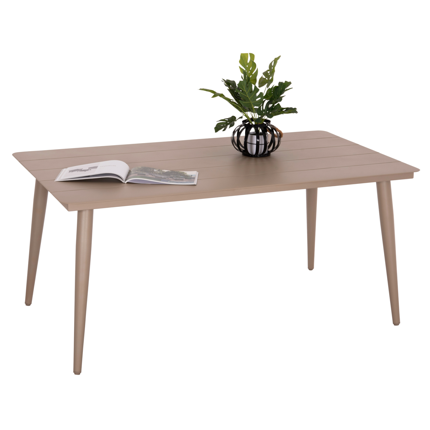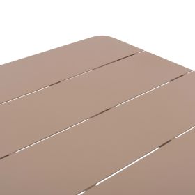 Το ορθογώνιο τραπέζι HIGER είναι κατασκευασμένο εξολοκλήρου από φέτες αλουμινίου σε ΚΑΠΟΥΤΣΙΝΟ χρώμα με υφή wood grain. Στηρίζεται σε 4 καλαίσθητα πόδια. Το HIGER πραγματικά θα το αγαπήσετε! Συνδυάστε τo με καρέκλες με την ίδια αισθητική και μεταμορφώστε τον εξωτερικό σας χώρο.