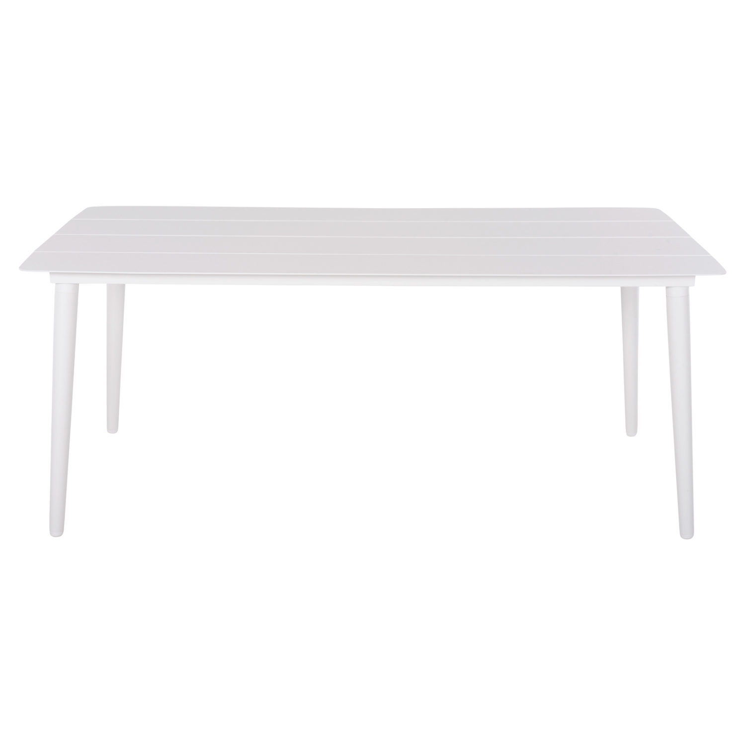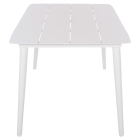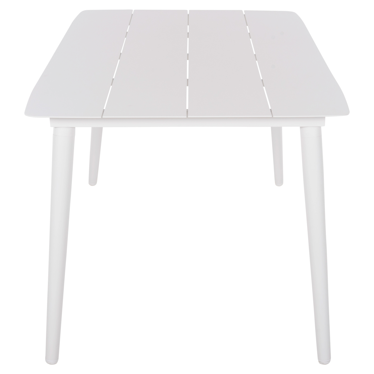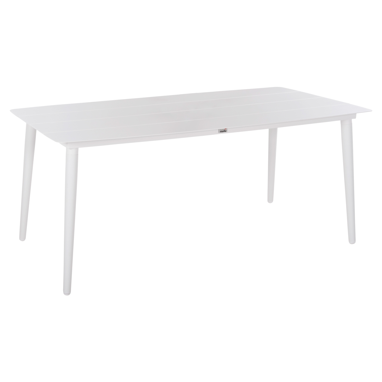 Το JEROM είναι ένα μεγάλο ορθογώνιο τραπέζι για εξωτερικούς χώρους εξολοκλήρου από αλουμίνιο σε ΛΕΥΚΟ χρώμα. Η επιφάνεια αποτελείται από 4 πλάκες αλουμινίου επίσης σε ΛΕΥΚΟ χρώμα, ενώ τα 4 πόδια είναι σε κυλινδρική υλοποίηση. Πρόκειται για ένα τραπέζι που χαρακτηρίζεται από ανθεκτικότητα και πρακτικότητα.