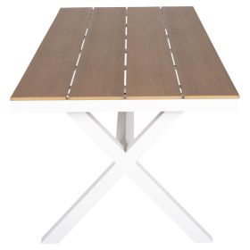 Το TAWNEE είναι ένα μεγάλο ορθογώνιο τραπέζι για εξωτερικούς χώρους με σκελετό αλουμινίου σε χιαστί διάταξη ποδιών που συνδέονται με μια μπάρα αλουμινίου και έχει ΛΕΥΚΟ χρώμα. Η επιφάνεια είναι από πλάκες polywood σε ΦΥΣΙΚΟ χρώμα ξύλου. Πρόκειται για ένα όμορφο τραπέζι σε μεγάλη διάσταση, που μπορεί να εξυπηρετήσει 8 άτομα. Εσείς απλά βρείτε τις καρέκλες ή πολυθρόνες που ταιριάζουν και απολαύστε όμορφες στιγμές.