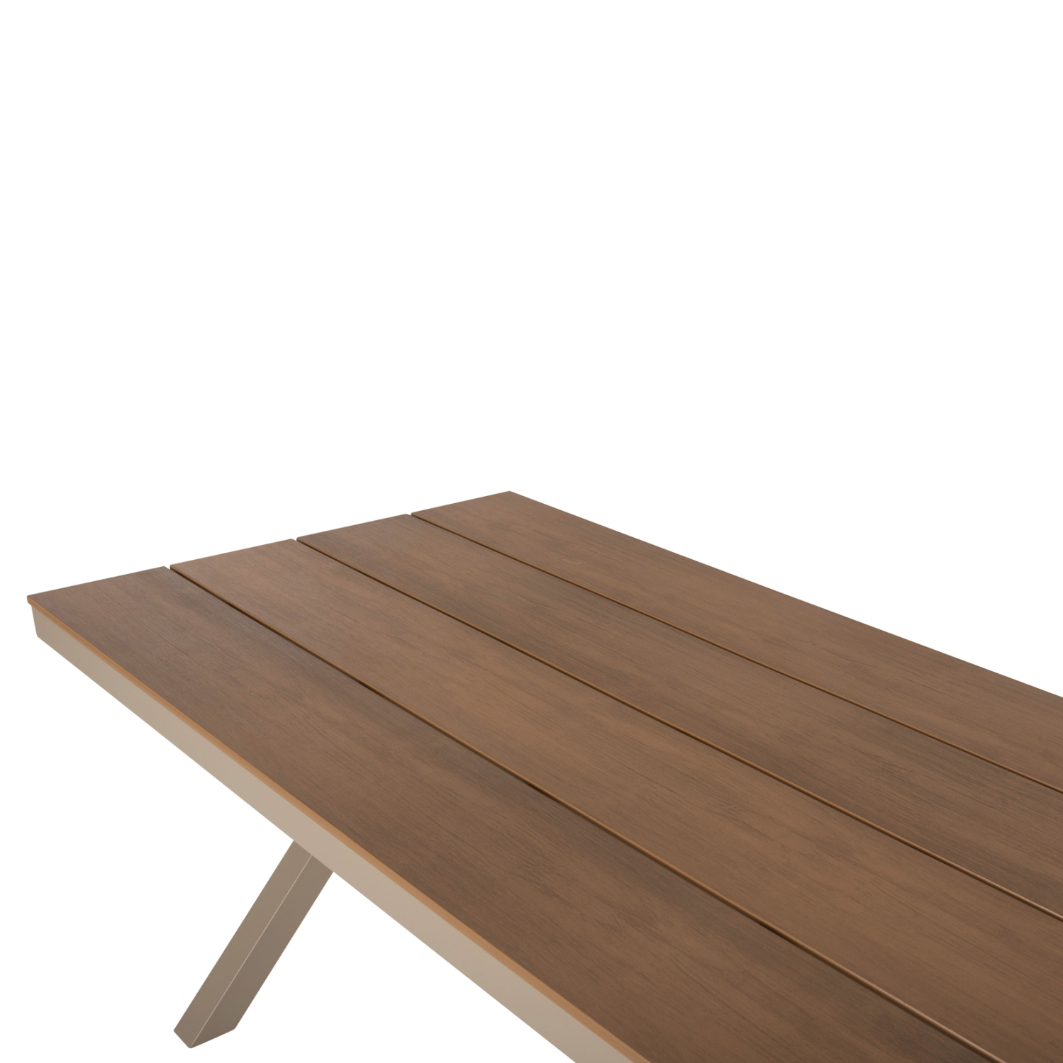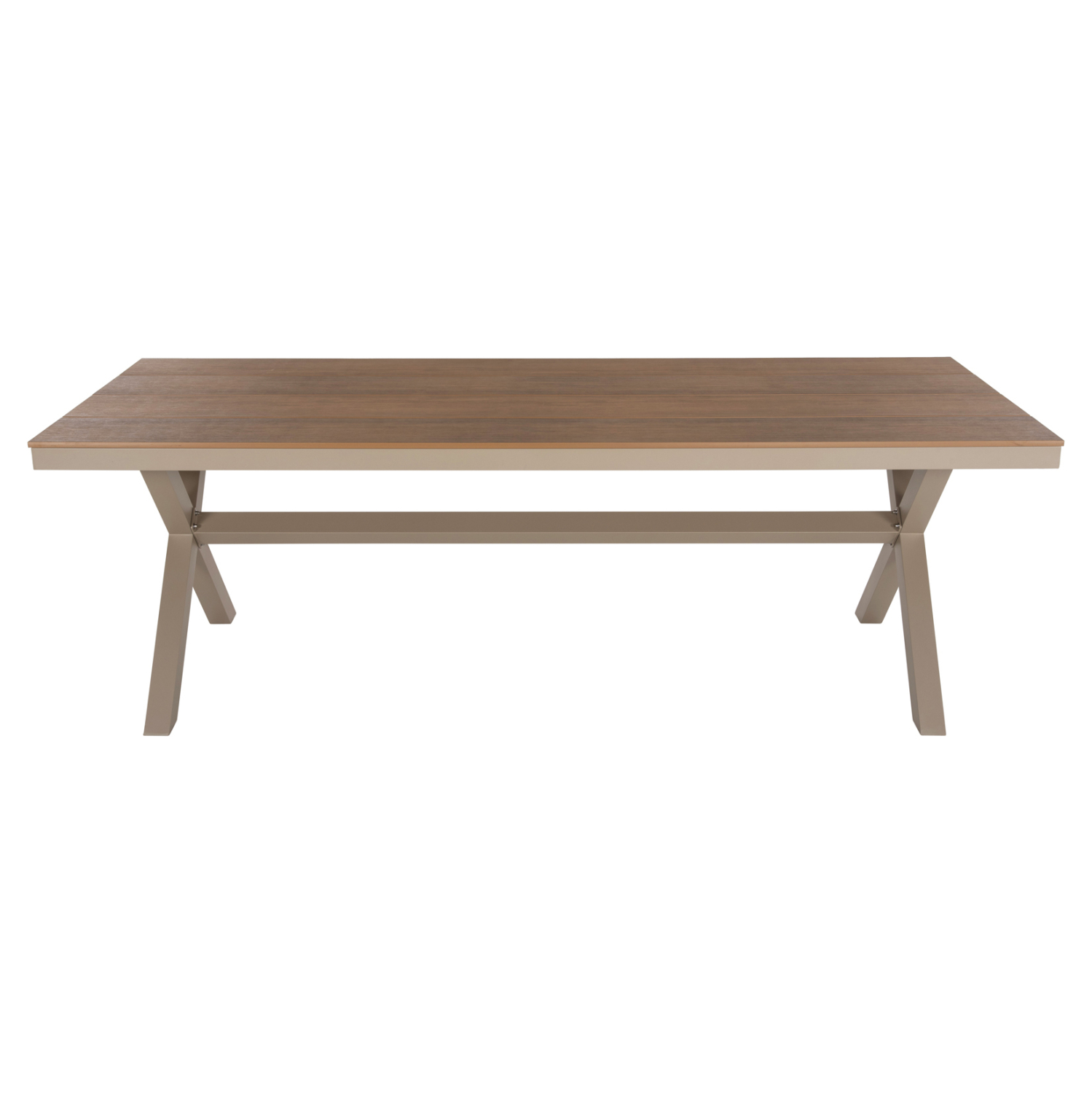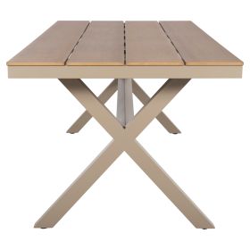 Το TAWNEE είναι ένα μεγάλο ορθογώνιο τραπέζι για εξωτερικούς χώρους με σκελετό αλουμινίου σε χιαστί διάταξη ποδιών που συνδέονται με μια μπάρα αλουμινίου και έχει ΣΑΜΠΑΝΙ χρώμα. Η επιφάνεια είναι από πλάκες polywood σε ΦΥΣΙΚΟ χρώμα ξύλου. Πρόκειται για ένα όμορφο τραπέζι σε μεγάλη διάσταση, που μπορεί να εξυπηρετήσει 8 άτομα. Εσείς απλά βρείτε τις καρέκλες ή πολυθρόνες που ταιριάζουν και απολαύστε όμορφες στιγμές.