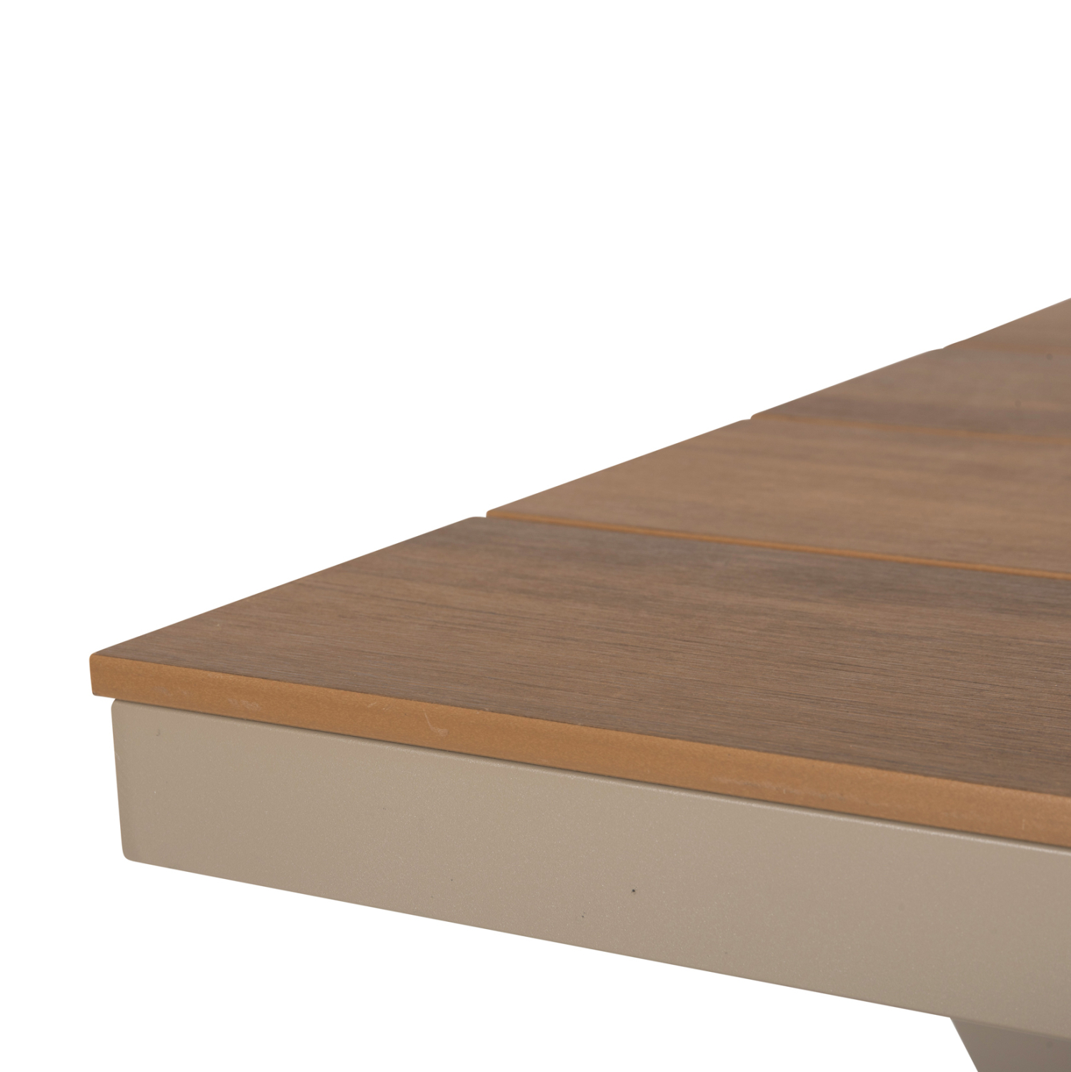 Η επιφάνεια του τραπεζιού είναι κατασκευασμένη από polywood. Αυτό είναι μια μορφή πλαστικής ξυλείας που είναι φιλική προς το περιβάλλον και απαιτεί ελαφρά συντήρηση. Η πλαστική ξυλεία είναι 100% ανακυκλώσιμη και ταυτόχρονα, είναι αδιάβροχη και αντιστέκεται σε όλα τα είδη σήψης και μούχλας.