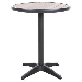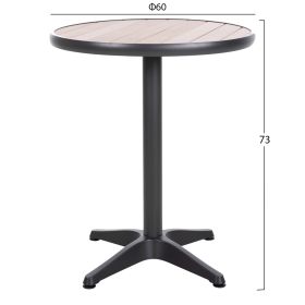 Το ALEXA είναι ένα στρογγυλό τραπέζι για εξωτερικούς χώρους με σκελετό αλουμινίου σε ΑΝΘΡΑΚΙ χρώμα. Η επιφάνεια είναι από πλάκες polywood σε ΦΥΣΙΚΟ χρώμα ξύλου μονταρισμένες σε ένα φαρδύ «δαχτυλίδι» αλουμινίου, και στηρίζεται σε μια 4-νυχη κολώνα. Πρόκειται για ένα όμορφο τραπέζι σε μικρή διάσταση, ιδανικό τόσο για το σπίτι, όσο και για επαγγελματικούς χώρους.