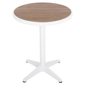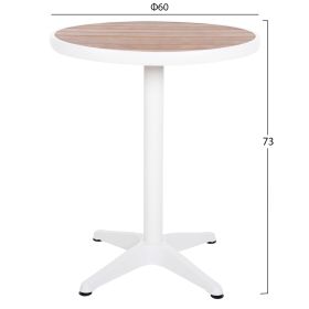 Το ALEXA είναι ένα στρογγυλό τραπέζι για εξωτερικούς χώρους με σκελετό αλουμινίου σε ΛΕΥΚΟ χρώμα. Η επιφάνεια είναι από πλάκες polywood σε ΦΥΣΙΚΟ χρώμα ξύλου μονταρισμένες σε ένα φαρδύ «δαχτυλίδι» αλουμινίου, και στηρίζεται σε μια 4-νυχη κολώνα. Πρόκειται για ένα όμορφο τραπέζι σε μικρή διάσταση, ιδανικό τόσο για το σπίτι, όσο και για επαγγελματικούς χώρους.