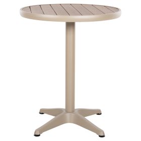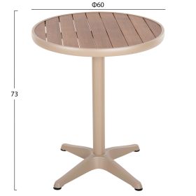 Το ALEXA είναι ένα στρογγυλό τραπέζι για εξωτερικούς χώρους με σκελετό αλουμινίου σε ΣΑΜΠΑΝΙ χρώμα. Η επιφάνεια είναι από πλάκες polywood σε ΦΥΣΙΚΟ χρώμα ξύλου μονταρισμένες σε ένα φαρδύ «δαχτυλίδι» αλουμινίου, και στηρίζεται σε μια 4-νυχη κολώνα. Πρόκειται για ένα όμορφο τραπέζι σε μικρή διάσταση, ιδανικό τόσο για το σπίτι, όσο και για επαγγελματικούς χώρους.
