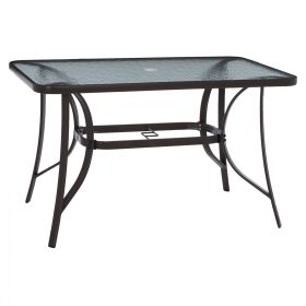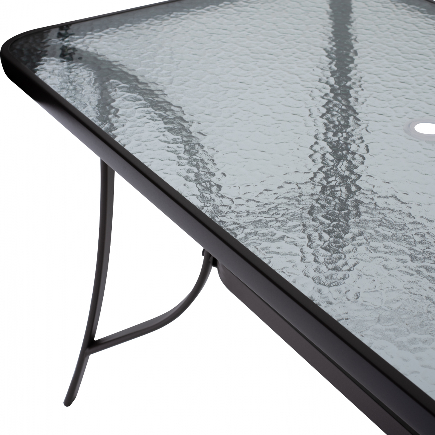 ΗΜ5021.12 Τραπέζι BRAVO εξωτερικού χώρου με ΚΑΦΕ μεταλλικό σκελετό και γυάλινη θολή επιφάνεια! Πρόκειται για πολύ δημοφιλές τραπέζι που δεν λείπει σχεδόν από κανέναν μπαλκόνι ή κήπο. Το BRAVO μάλιστα έρχεται και με τρύπα στο κέντρο για τοποθέτηση ομπρέλας. Είναι ορθογώνιο με γωνίες στρογγυλεμένες ενώ το γυαλί της επιφάνειας είναι ενισχυμένο.
