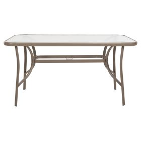 Το τραπέζι BRUNO εξωτερικού χώρου έχει ΣΑΜΠΑΝΙ μεταλλικό σκελετό και γυάλινη θολή επιφάνεια! Πρόκειται για πολύ δημοφιλές τραπέζι που δεν λείπει σχεδόν από κανέναν μπαλκόνι ή κήπο. Είναι ορθογώνιο με γωνίες στρογγυλεμένες ενώ το γυαλί της επιφάνειας είναι ενισχυμένο.