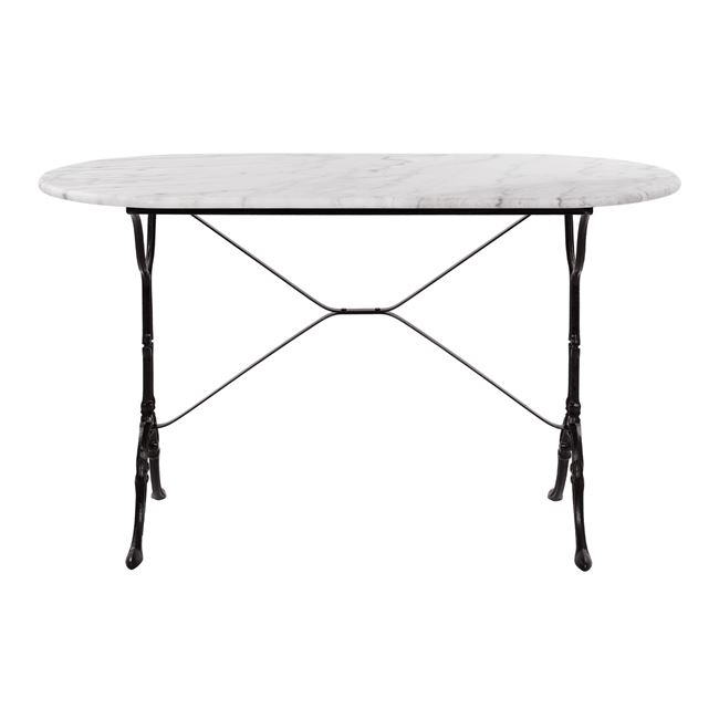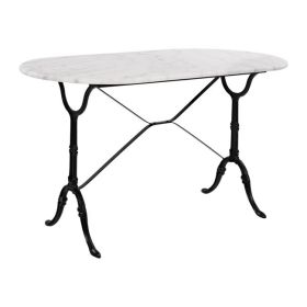 Το τραπέζι HM440 είναι κατασκευασμένο από μάρμαρο σε οβάλ σχήμα και λευκή απόχρωση ενώ η βάση του είναι κατασκευασμένη από μαντέμι σε μαύρη απόχρωση.