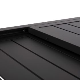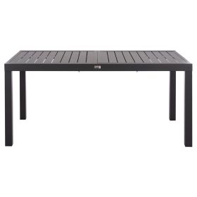 Το μεγάλο ορθογώνιο τραπέζι KRUM είναι κατασκευασμένο εξολοκλήρου από αλουμίνιο σε ΣΚΟΥΡΟ ΓΚΡΙ χρώμα. Σχεδιαστικά ακολουθεί την κλασική «γραμμή», αυτό ωστόσο που το κάνει να ξεχωρίζει είναι η επεκτεινόμενη επιφάνειά του, η οποία διαθέτει και μηχανισμό ασφαλείας που σταθεροποιεί την επιφάνεια. Ιδανικό για πληθώρα χρήσεων, τόσο στο σπίτι, όσο και σε επαγγελματικούς χώρους.