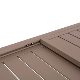 Το μεγάλο ορθογώνιο τραπέζι KRUM είναι κατασκευασμένο εξολοκλήρου από αλουμίνιο σε ΚΑΠΟΥΤΣΙΝΟ χρώμα. Σχεδιαστικά ακολουθεί την κλασική «γραμμή», αυτό ωστόσο που το κάνει να ξεχωρίζει είναι η επεκτεινόμενη επιφάνειά του, η οποία διαθέτει και μηχανισμό ασφαλείας που σταθεροποιεί την επιφάνεια. Ιδανικό για πληθώρα χρήσεων, τόσο στο σπίτι, όσο και σε επαγγελματικούς χώρους.