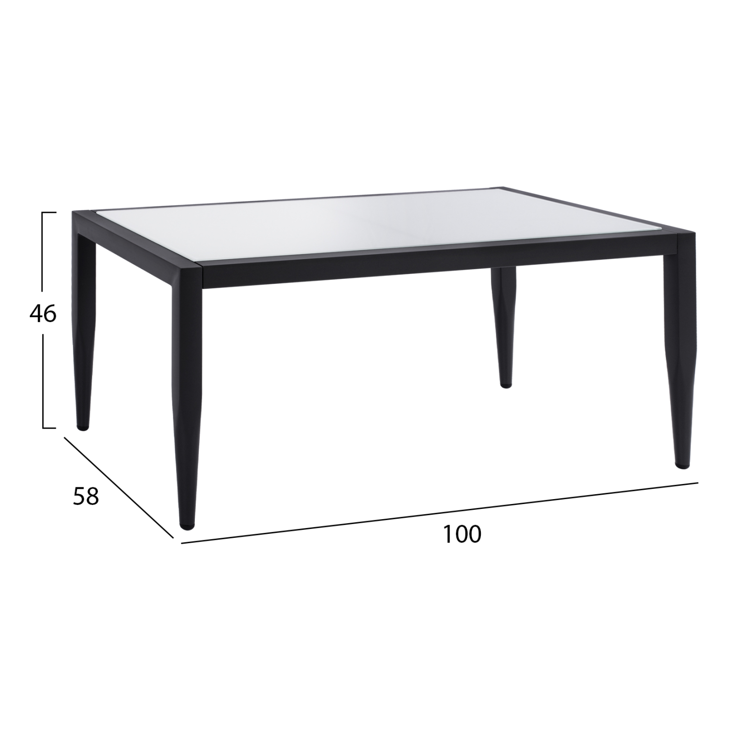 Επαγγελματικό τραπεζάκι χαμηλό για καθιστικό αλουμινίου, σε γκρι απόχρωση με γυαλί στην επιφάνειά του.