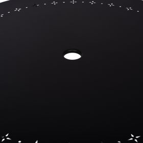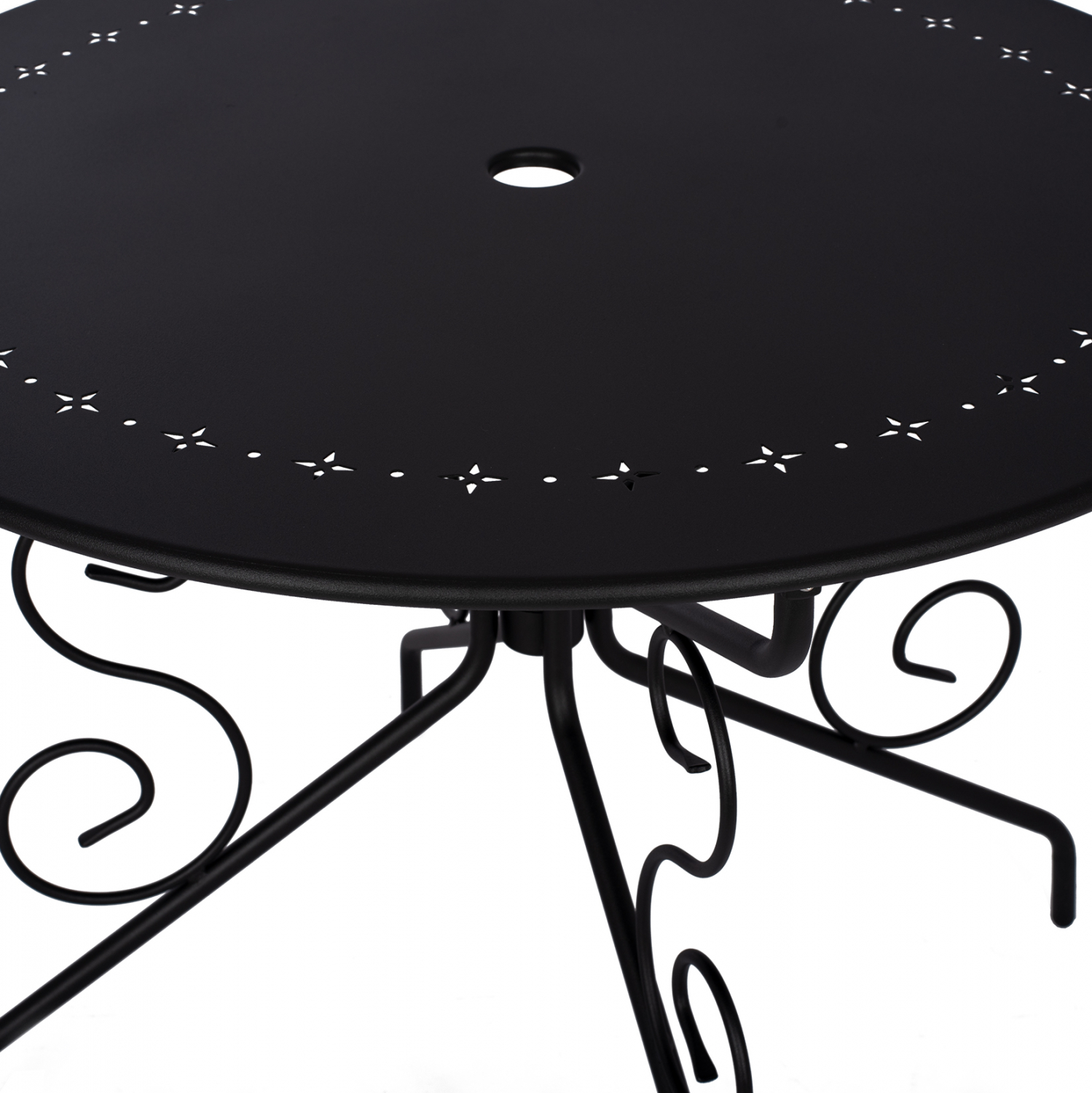 Τραπέζι μεταλλικό για εξωτερικό χώρο με θέση για ομπρέλα με εντυπωσιακά σχέδια στην βάση και την επιφάνεια του.