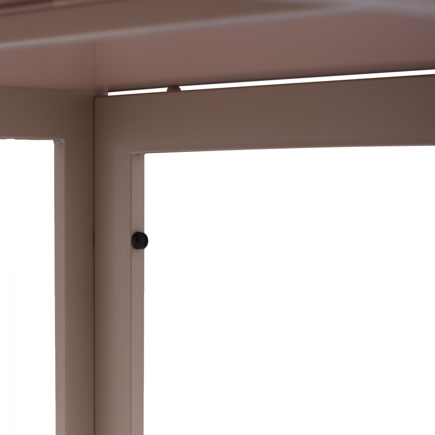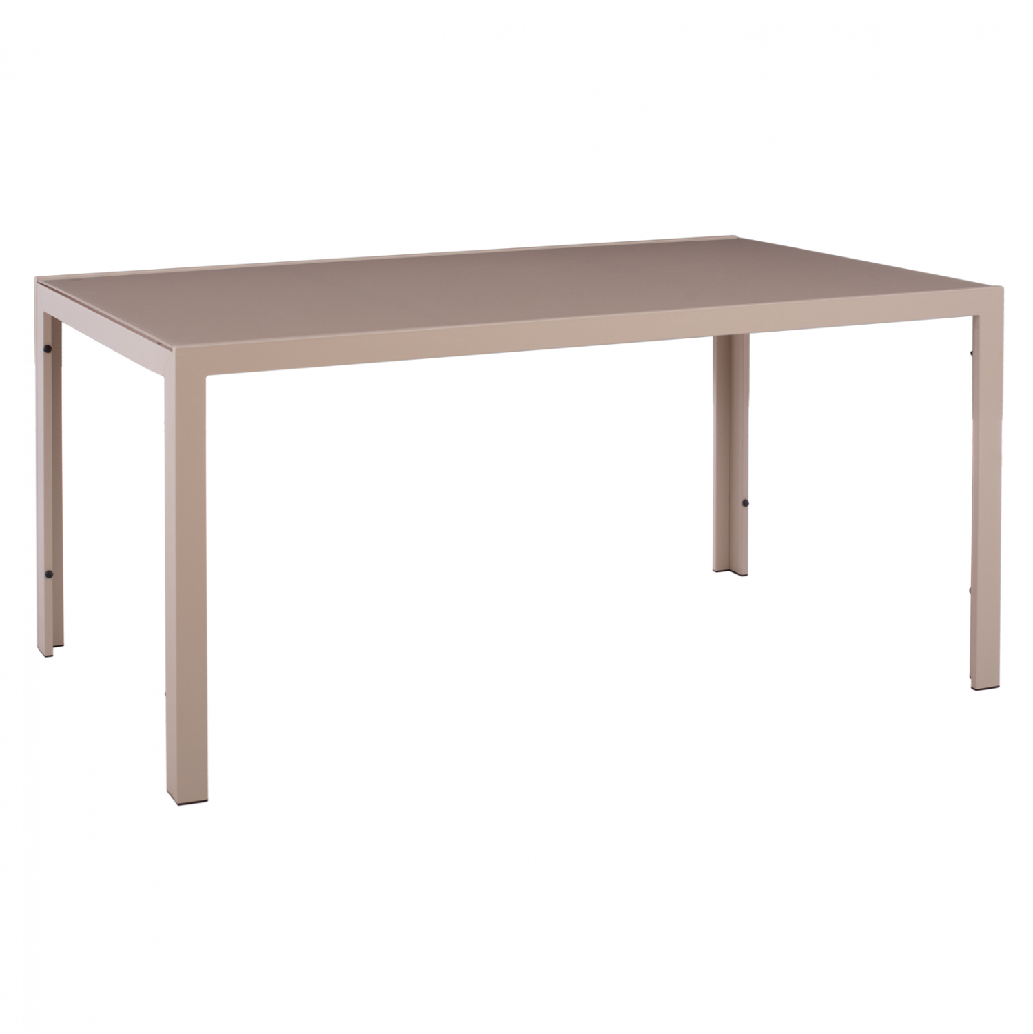 Τραπέζι εξωτερικού χώρου μεταλλικό σε απόχρωση καπουτσίνο με γυαλί στην επιφάνειά του.