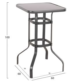 Το τραπέζι μπαρ εξωτερικού χώρου FIGGY σε ΓΚΡΙ χρώμα είναι τετράγωνο με στρογγυλεμένες γωνίες και καμπυλωτή διάταξη στα πόδια. Πρόκειται για πολύ σταθερό κι ανθεκτικό τραπέζι με επιφάνεια από γυαλί ασφαλείας και δύο «δαχτυλίδια» δεσίματος των ποδιών, που θα ικανοποιήσει και τους πιο απαιτητικούς!