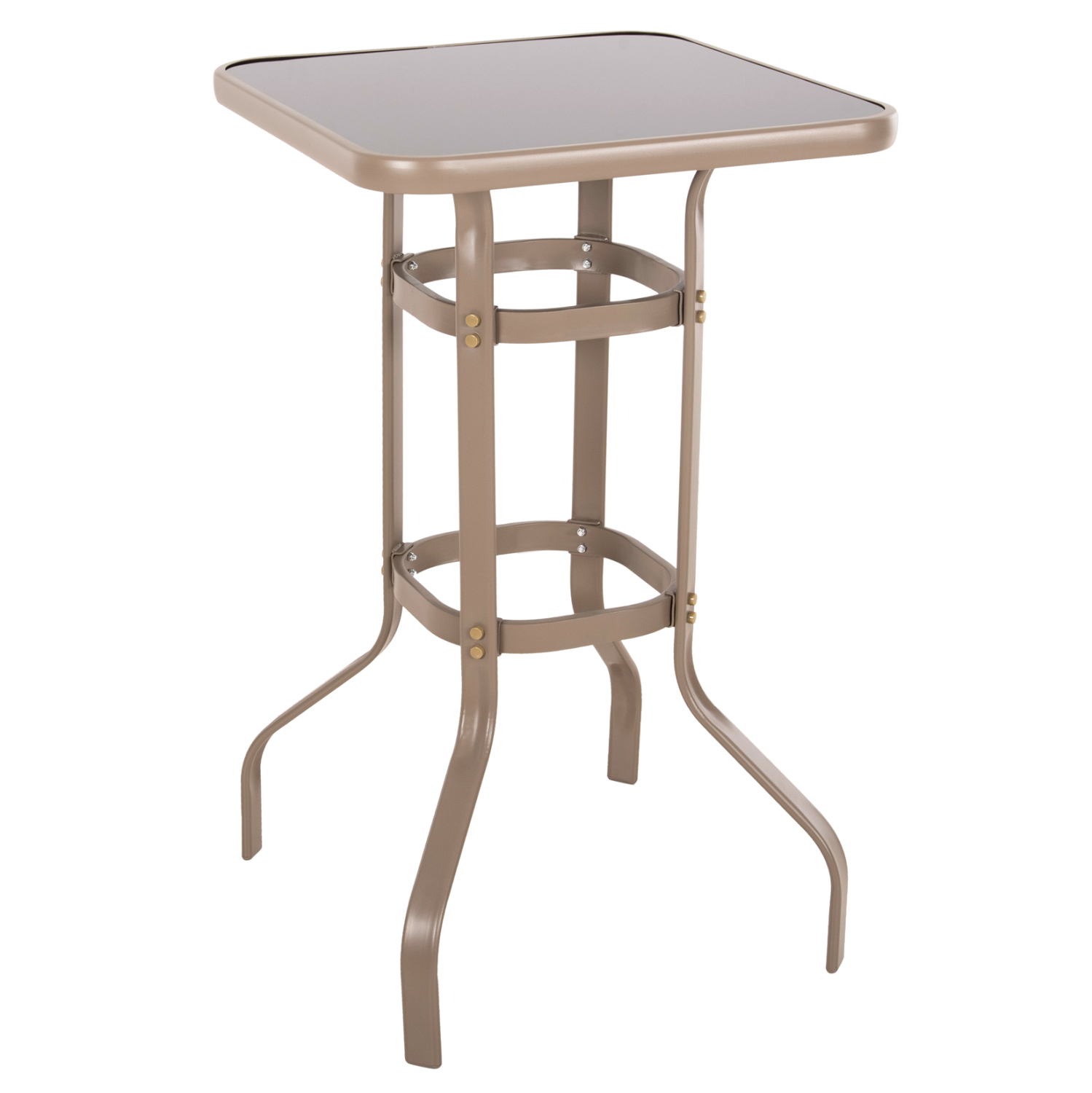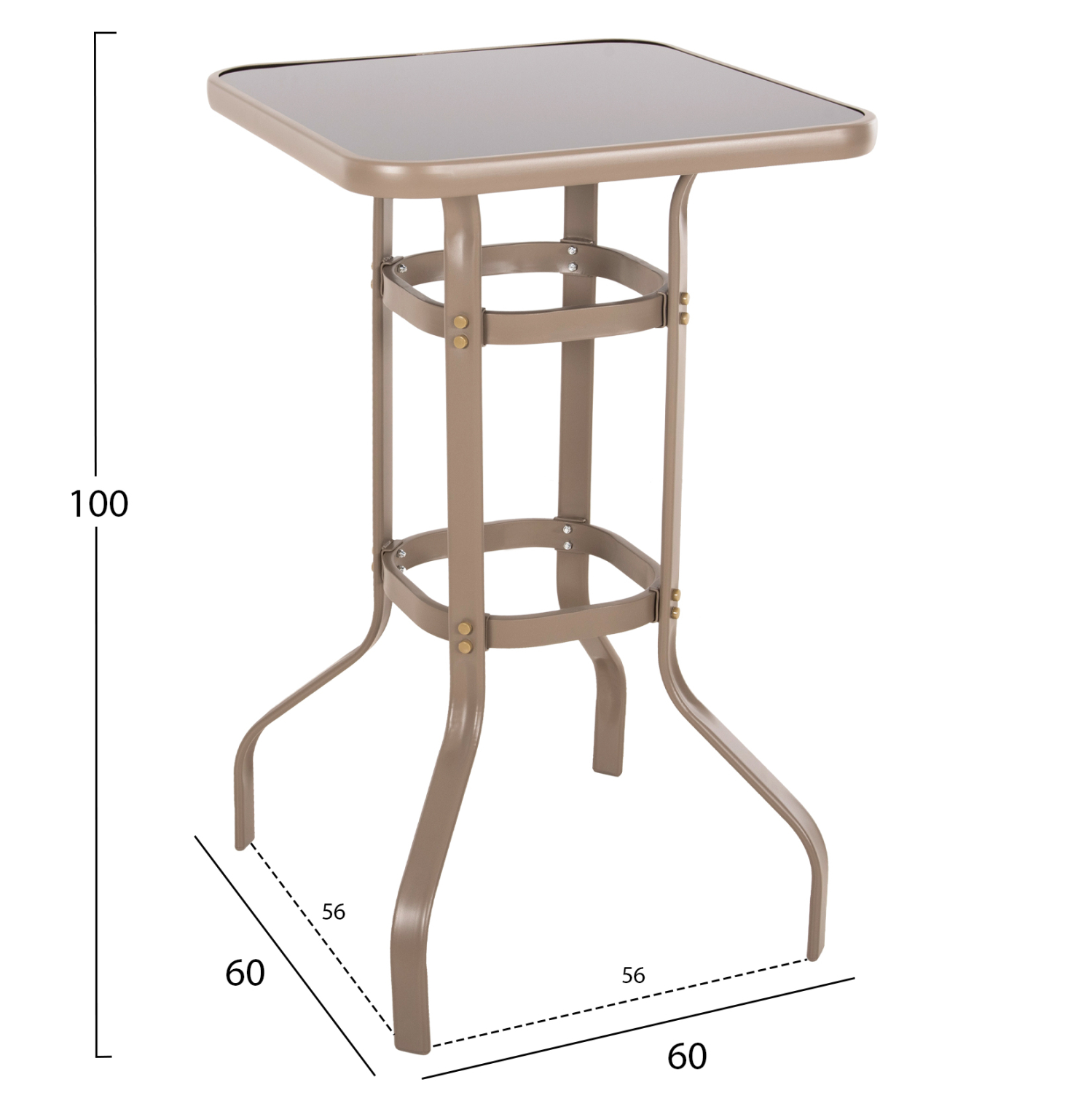 Το τραπέζι μπαρ εξωτερικού χώρου FIGGY σε ΣΑΜΠΑΝΙ χρώμα είναι τετράγωνο με στρογγυλεμένες γωνίες και καμπυλωτή διάταξη στα πόδια. Πρόκειται για πολύ σταθερό κι ανθεκτικό τραπέζι με επιφάνεια από γυαλί ασφαλείας και δύο «δαχτυλίδια» δεσίματος των ποδιών, που θα ικανοποιήσει και τους πιο απαιτητικούς!