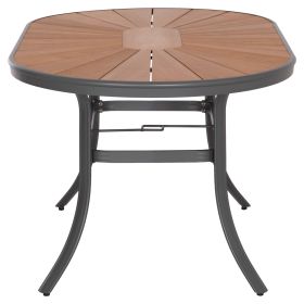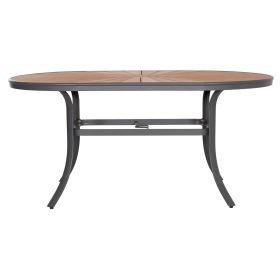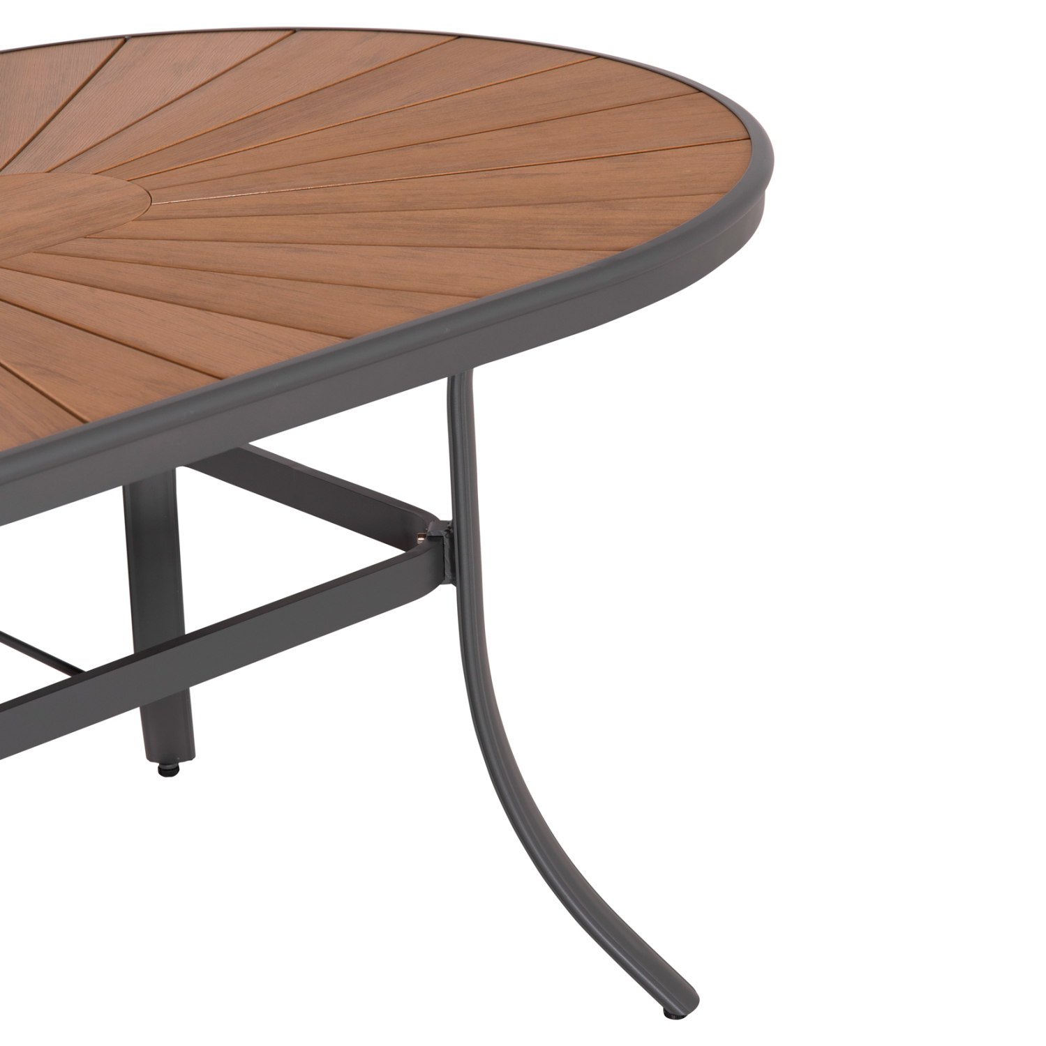 Το TELAMO είναι ένα οβάλ τραπέζι τραπεζαρίας για εξωτερικούς χώρους με σκελετό αλουμινίου σε ΑΝΘΡΑΚΙ χρώμα. Η επιφάνεια είναι από πλάκες polywood σε ΦΥΣΙΚΟ χρώμα ξύλου. Πρόκειται για ένα όμορφο τραπέζι σε μεγάλη διάσταση, που μπορεί να εξυπηρετήσει 6 τουλάχιστον άτομα.