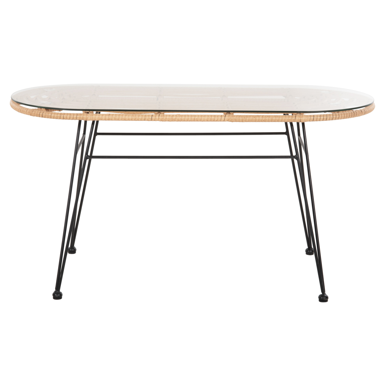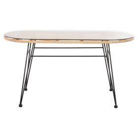 Το οβάλ χαμηλό τραπέζι εξωτερικού χώρου της σειράς επίπλων ALLEGRA έχει ΜΑΥΡΟ μεταλλικό σκελετό με 4 πόδια. Το επάνω μέρος του σκελετού είναι επενδυμένο με συνθετικό Rattan σε ΜΠΕΖ(φυσικό) χρώμα, έτσι ώστε να τοποθετηθεί το γυαλί ασφαλείας της επιφάνειας. Ένα κλασικό, πια, σχέδιο που μπορείτε να το ταιριάξετε με πολλές διαφορετικές καρέκλες ή πολυθρόνες, είτε ίδιας είτε διαφορετικής φιλοσοφίας. Οι διαστάσεις του το κάνουν ιδανικό για μικρότερους χώρους, τόσο επαγγελματικούς, όσο και για το σπίτι.