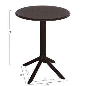 Το τραπέζι πολυπροπυλενίου TERRIN σε ΚΑΦΕ χρώμα είναι η ιδανική πρόταση για χρήση σε εξωτερικούς χώρους, είτε επαγγελματικούς (χώροι δεξιώσεων, εταιρείες catering, κλπ.) είτε για το σπίτι. Το τραπέζι είναι στρογγυλό, ενώ η στήριξη γίνεται με μια κολώνα στο κέντρο που καταλήγει σε 4 πόδια («νύχια»).