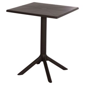 Το τραπέζι πολυπροπυλενίου TERRIN σε ΚΑΦΕ χρώμα είναι η ιδανική πρόταση για χρήση σε εξωτερικούς χώρους, είτε επαγγελματικούς (χώροι δεξιώσεων, εταιρείες catering, κλπ.) είτε για το σπίτι. Το τραπέζι είναι τετράγωνο, ενώ η στήριξη γίνεται με μια κολώνα στο κέντρο που καταλήγει σε 4 πόδια («νύχια»).