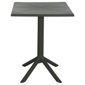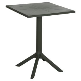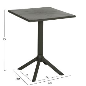 Το τραπέζι πολυπροπυλενίου TERRIN σε DARK OLIVE χρώμα είναι η ιδανική πρόταση για χρήση σε εξωτερικούς χώρους, είτε επαγγελματικούς (χώροι δεξιώσεων, εταιρείες catering, κλπ.) είτε για το σπίτι. Το τραπέζι είναι τετράγωνο, ενώ η στήριξη γίνεται με μια κολώνα στο κέντρο που καταλήγει σε 4 πόδια («νύχια»).