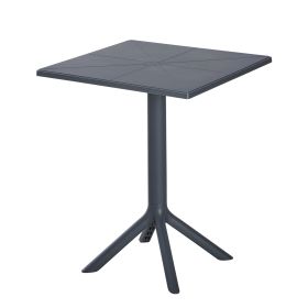 Το τραπέζι πολυπροπυλενίου TERRIN σε ΣΚΟΥΡΟ ΓΚΡΙ χρώμα είναι η ιδανική πρόταση για χρήση σε εξωτερικούς χώρους, είτε επαγγελματικούς (χώροι δεξιώσεων, εταιρείες catering, κλπ.) είτε για το σπίτι. Το τραπέζι είναι τετράγωνο, ενώ η στήριξη γίνεται με μια κολώνα στο κέντρο που καταλήγει σε 4 πόδια («νύχια»).