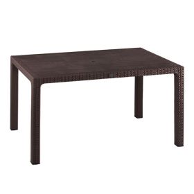 Τραπέζι πολυπροπυλενίου σε καφέ απόχρωση με rattan λεπτομέρειες περιμετρικά της επιφάνειας.