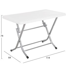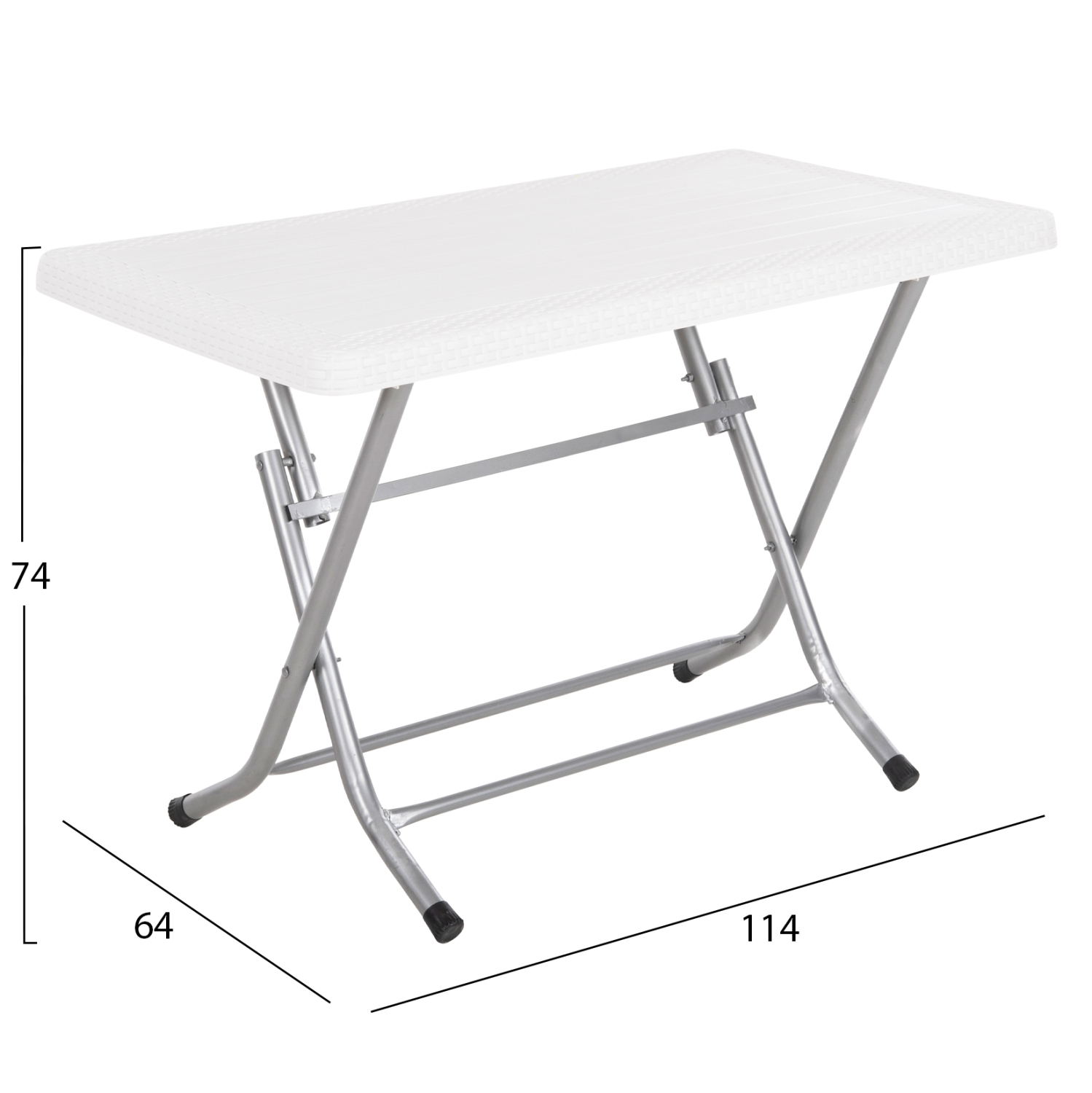 Το CONNY είναι ένα ορθογώνιο τραπέζι με μονοκόμματη ΛΕΥΚΗ επιφάνεια από πολυπροπυλένιο με όψη Rattan και ΜΕΤΑΛΛΙΚΑ πόδια. Ιδανικό τόσο για περιορισμένους χώρους στο σπίτι ή ως συμπληρωματικό για στιγμές που το απαιτούν, όσο και για εταιρίες catering, για συνεδριακούς χώρους και γενικά για όποιον θέλει ένα ή περισσότερα τραπέζια για πολυπληθείς συγκεντρώσεις χωρίς το άγχος της αποθήκευσης, αφού τα πόδια αυτού του τραπεζιού είναι αναδιπλούμενα, με αποτέλεσμα να μπορείτε να αποθηκεύετε πολλά μαζί σε ελάχιστο χώρο. Επίσης, η μεταφορά γίνεται εύκολα και με ασφάλεια.