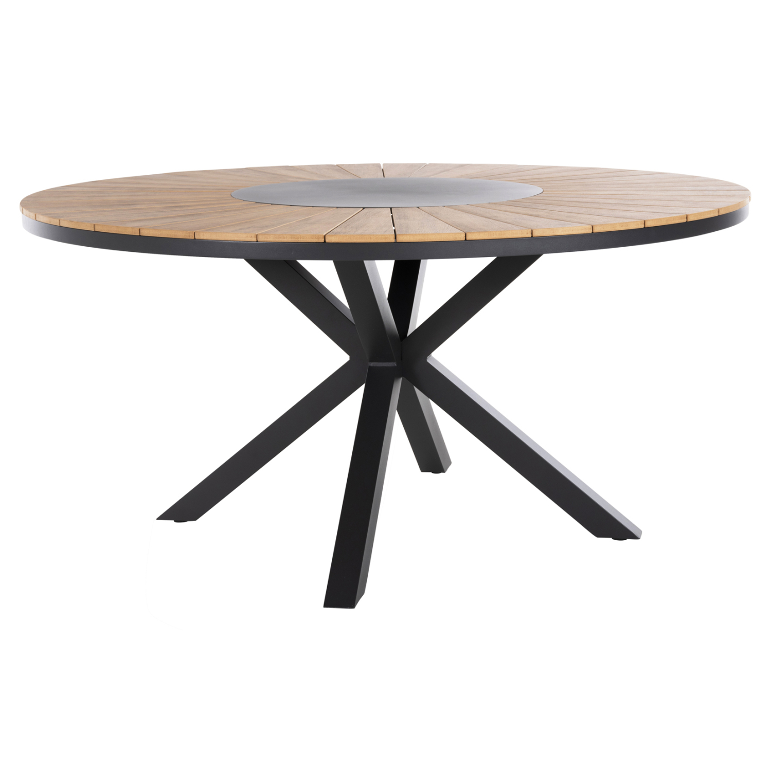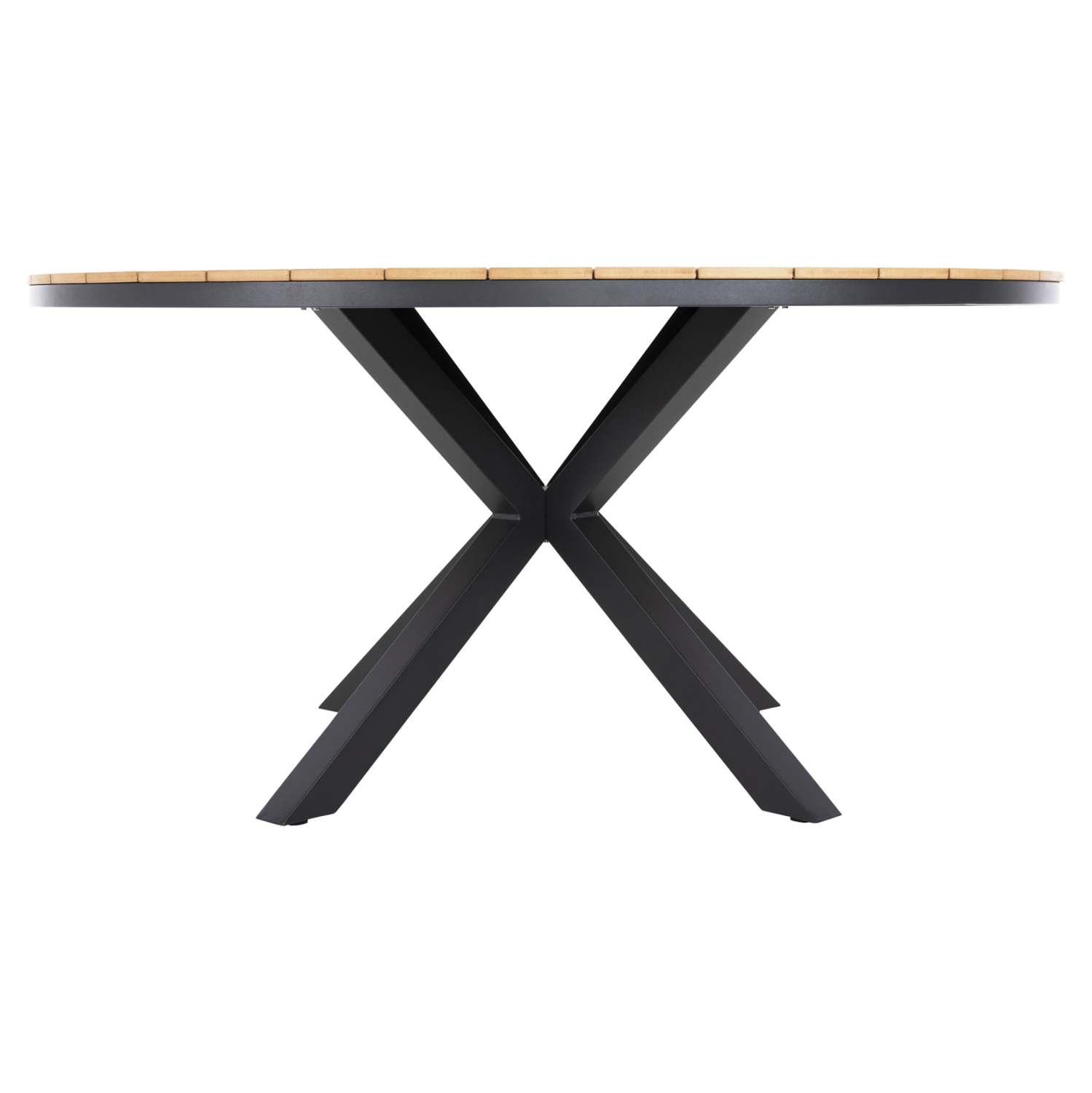 Το MORIL είναι ένα στρογγυλό τραπέζι για εξωτερικούς χώρους με σκελετό αλουμινίου σε χιαστί διάταξη βάσης και ΑΝΘΡΑΚΙ χρώμα. Η επιφάνεια είναι από πλάκες polywood σε ΦΥΣΙΚΟ χρώμα ξύλου. Πρόκειται για ένα όμορφο τραπέζι σε μεγάλη διάσταση, που μπορεί να εξυπηρετήσει 6 τουλάχιστον άτομα.
