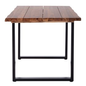 Ανακαλύψτε το μοναδικό τραπέζι για εξωτερικούς χώρους FRIGGO με επιφάνεια από φυσικό μασίφ ξύλο ΑΚΑΚΙΑΣ σε ΦΥΣΙΚΟ χρώμα. To σχήμα είναι ορθογώνιο και στηρίζεται σε δύο μαύρες μεταλλικές βάσεις. Το μοντέρνο design συναντά την φύση και δίνει μια διαχρονική και ζεστή αίσθηση στον χώρο σας.