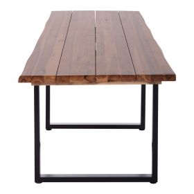 Ανακαλύψτε το μοναδικό τραπέζι για εξωτερικούς χώρους FRIGGO με επιφάνεια από φυσικό μασίφ ξύλο ΑΚΑΚΙΑΣ σε ΦΥΣΙΚΟ χρώμα. To σχήμα είναι ορθογώνιο και στηρίζεται σε δύο μαύρες μεταλλικές βάσεις. Το μοντέρνο design συναντά την φύση και δίνει μια διαχρονική και ζεστή αίσθηση στον χώρο σας.