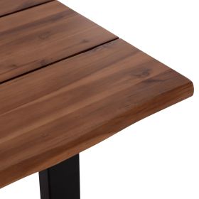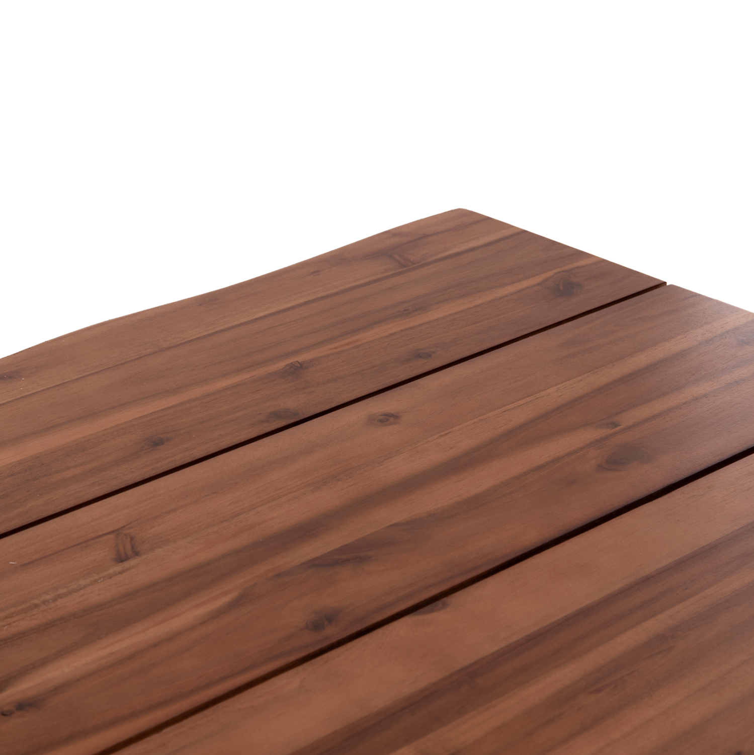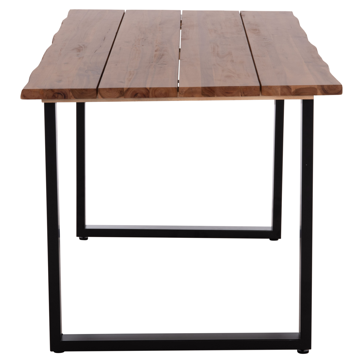Ανακαλύψτε το μοναδικό τραπέζι για εξωτερικούς χώρους FRIGGO με επιφάνεια από φυσικό μασίφ ξύλο ΑΚΑΚΙΑΣ σε ΦΥΣΙΚΟ χρώμα. To σχήμα είναι ορθογώνιο και στηρίζεται σε δύο μαύρες μεταλλικές βάσεις. Το μοντέρνο design συναντά την φύση και δίνει μια διαχρονική και ζεστή αίσθηση στον χώρο σας.