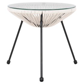 Το ALLEGRA είναι ένα χαμηλό στρογγυλό βοηθητικό τραπέζι, κυρίως για εξωτερικούς χώρους. Στηρίζεται σε μια βάση με 3 μαύρα μεταλλικά πόδια. Το τραπέζι είναι κωνικό από συνθετικό Rattan σε ΛΕΥΚΟ χρώμα, και η επιφάνειά του είναι γυαλί ασφαλείας. Ένα πανέμορφο τραπέζι, το οποίο αν συνδυαστεί και με καρέκλες της ίδιας σειράς θα αποτελέσει ένα καταπληκτικό μέρος στον χώρο σας.