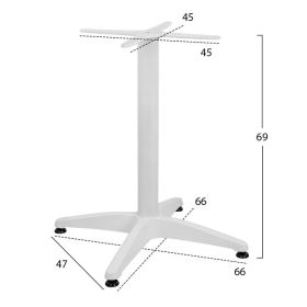 Βάση τραπεζιού τετράνυχη HM448.02 κατασκευασμένη από αλουμίνιο σε λευκή απόχρωση, με ρεγουλατόρους.