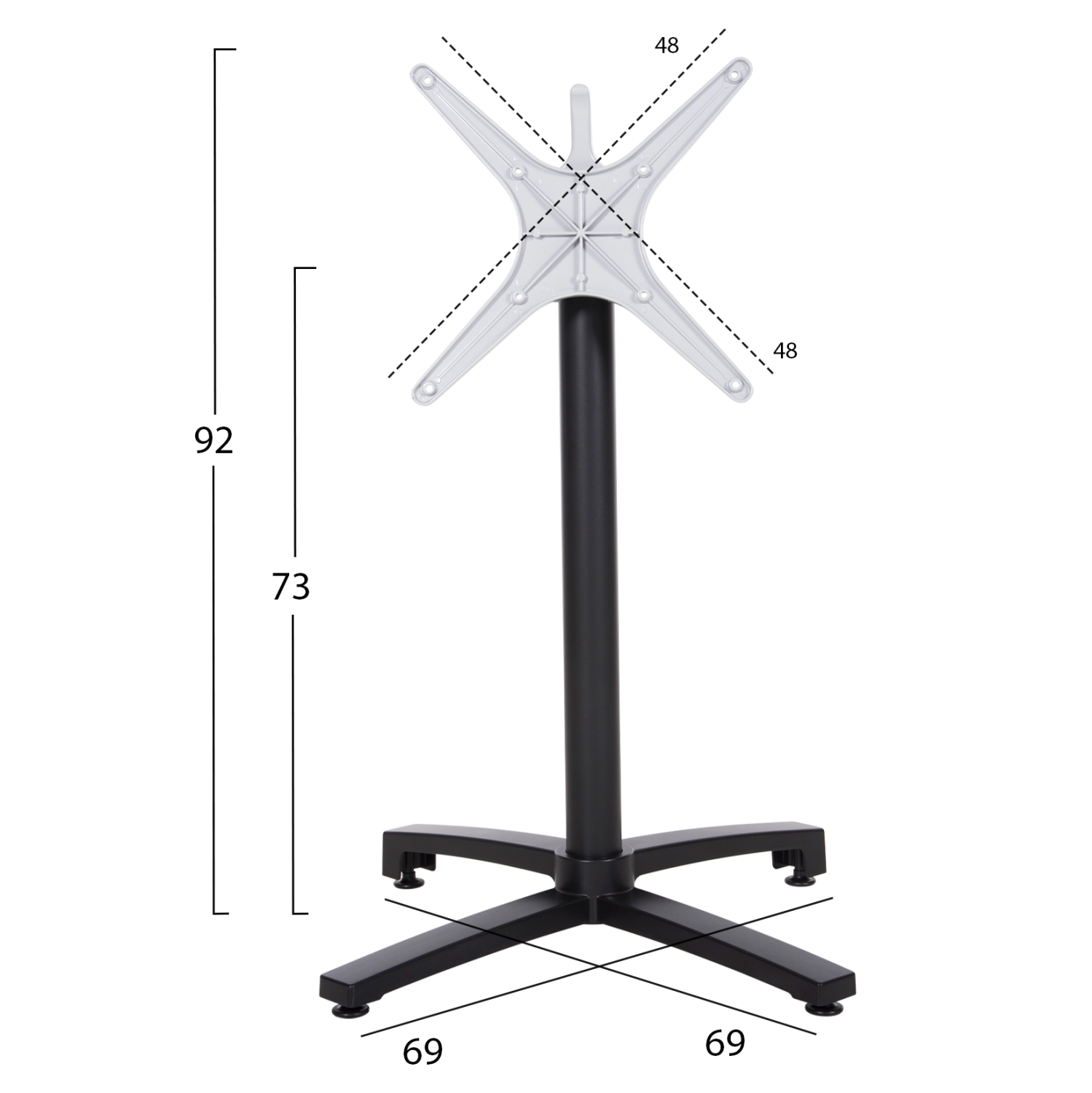 Η Βάση ενδείκνυται για επιφάνεια Φ60cm ή 60x60cm ή Φ70cm ή 70x70cm ή Φ80cm ή 80x80cm.