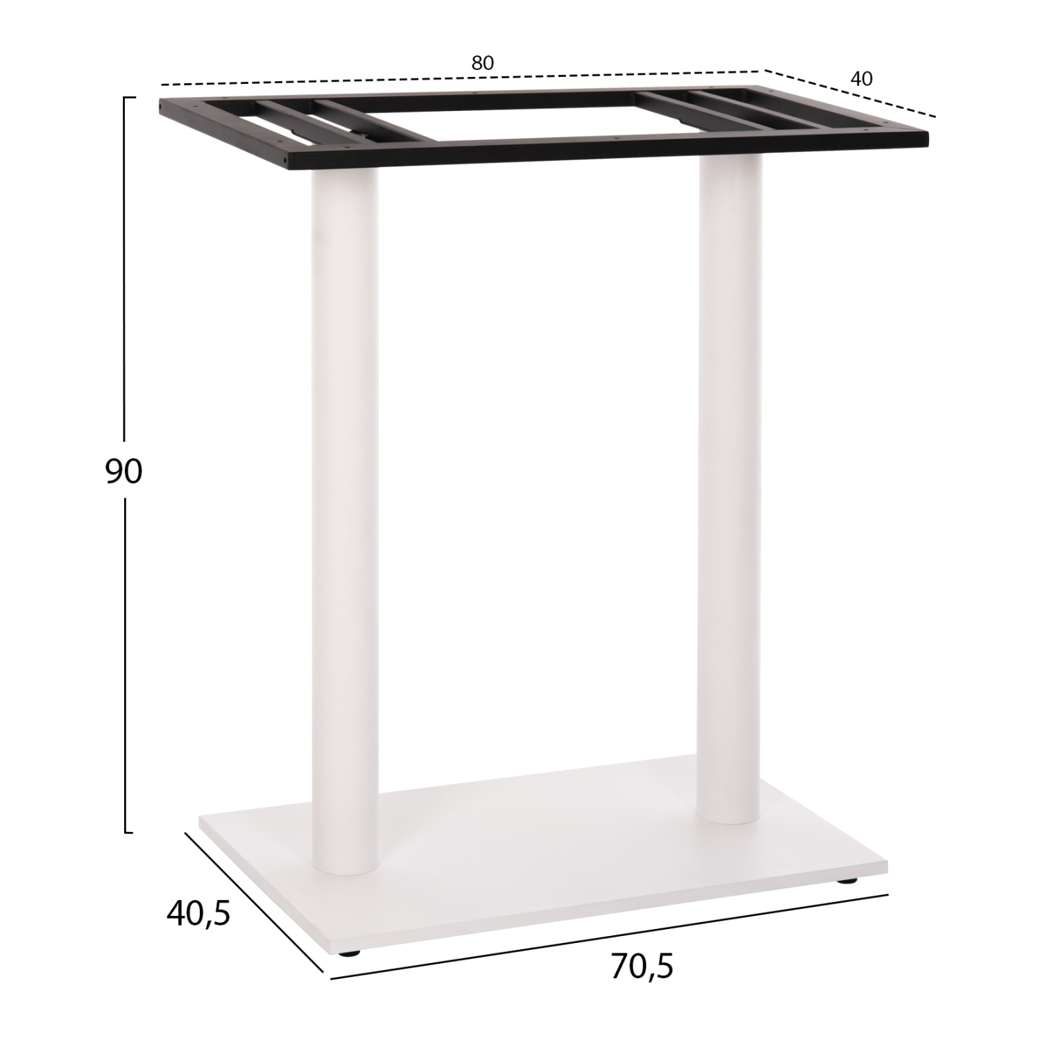 Η ΗΜ478.02 είναι βάση/πόδια για μεσαίου ύψους τραπέζι μπαρ σε ΛΕΥΚΟ MAT χρώμα. Αυτή η βάση είναι μεταλλική με δύο κολώνες (πόδια) τα οποία στηρίζονται σε μια επίπεδη μεταλλική επιφάνεια. Το χαρακτηριστικό που κάνει αυτή την βάση ιδιαίτερα πρακτική είναι ότι στο κάτω μέρος της διαθέτει ρυθμιστές ύψους (ρεγουλατόρους). Ιδανική πρόταση για συνδυασμό με επιφάνειες σχεδόν κάθε είδους, όπως βερσαλίτες, HPL, MDF, κτλ.