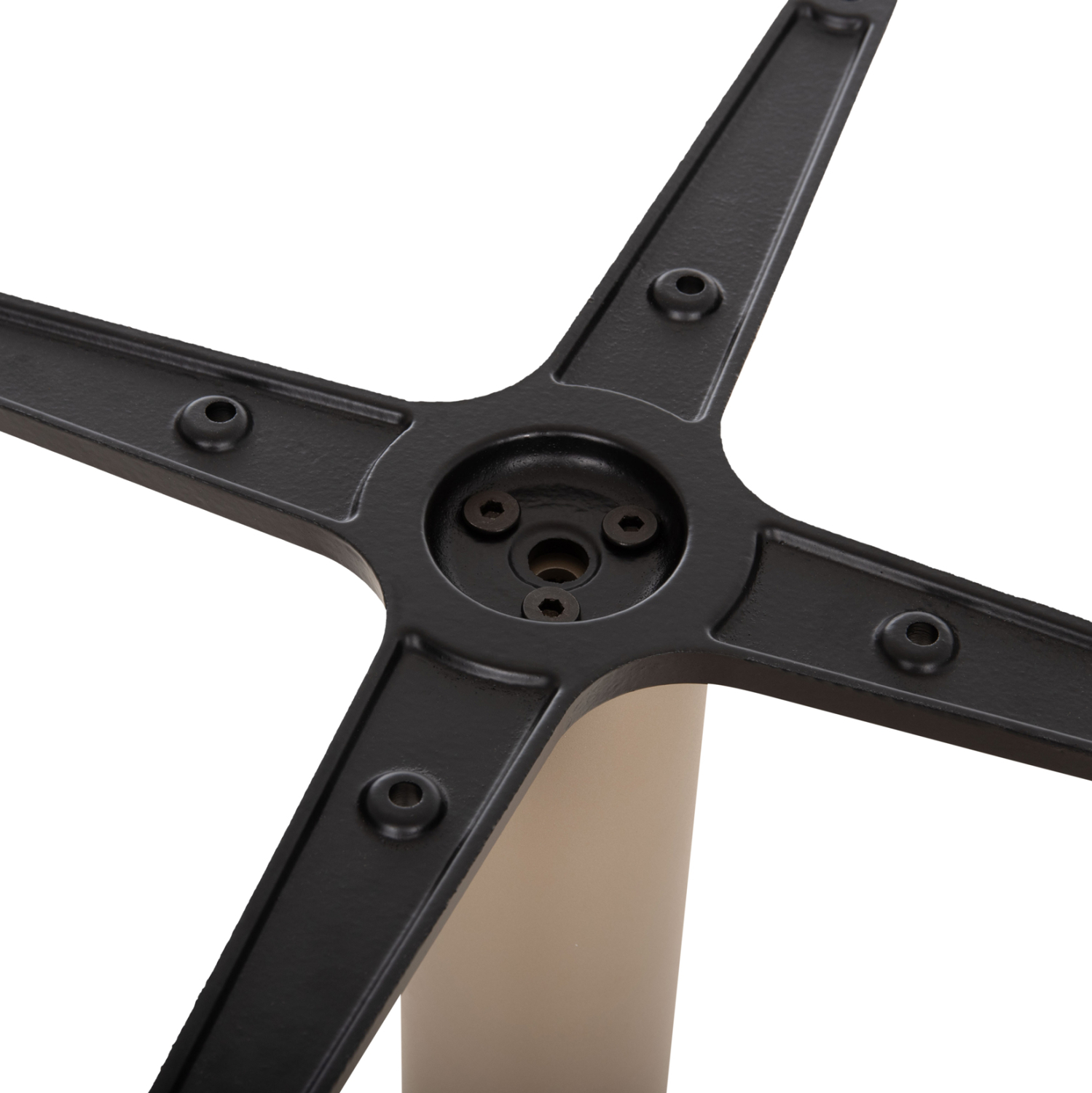 Η ΗΜ475.25 είναι βάση για τραπέζι σε ΚΑΠΟΥΤΣΙΝΟ χρώμα. Αυτή η βάση είναι αλουμινίου με μία κολώνα η οποία στηρίζεται σε μια βαριά επίπεδη μεταλλική επιφάνεια. Το χαρακτηριστικό που κάνει αυτή την βάση ιδιαίτερα πρακτική είναι ότι το καπάκι που θα διαλέξετε στηρίζεται σε «σταυρό», με αποτέλεσμα να μπορεί να δεχθεί τόσο στρογγυλά καπάκια, όσο και τετράγωνα. Επίσης, στο κάτω μέρος της διαθέτει ρυθμιστές ύψους (ρεγουλατόρους). Ιδανική πρόταση για συνδυασμό με επιφάνειες σχεδόν κάθε είδους, όπως βερσαλίτες, HPL, MDF, κτλ.