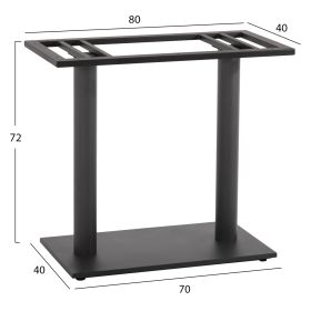Η ΗΜ435.20 είναι βάση/πόδια για τραπέζι σε ΓΚΡΙ ΜΑΤ χρώμα. Αυτή η βάση είναι μεταλλική με δύο κολώνες (πόδια) τα οποία στηρίζονται σε μια επίπεδη μεταλλική επιφάνεια. Το χαρακτηριστικό που κάνει αυτή την βάση ιδιαίτερα πρακτική είναι ότι στο κάτω μέρος της διαθέτει ρυθμιστές ύψους (ρεγουλατόρους). Ιδανική πρόταση για συνδυασμό με επιφάνειες σχεδόν κάθε είδους, όπως βερσαλίτες, HPL, MDF, κτλ.