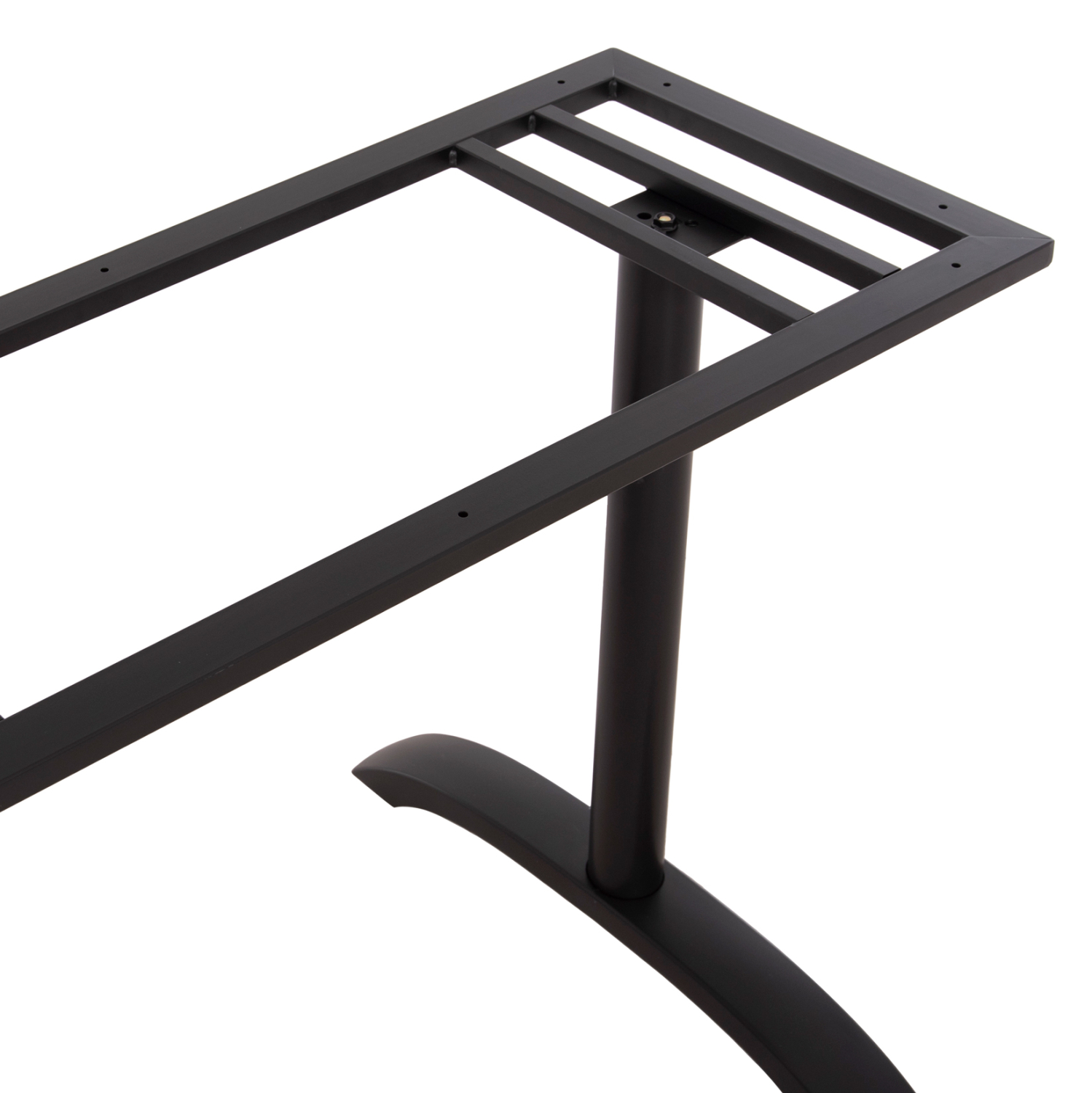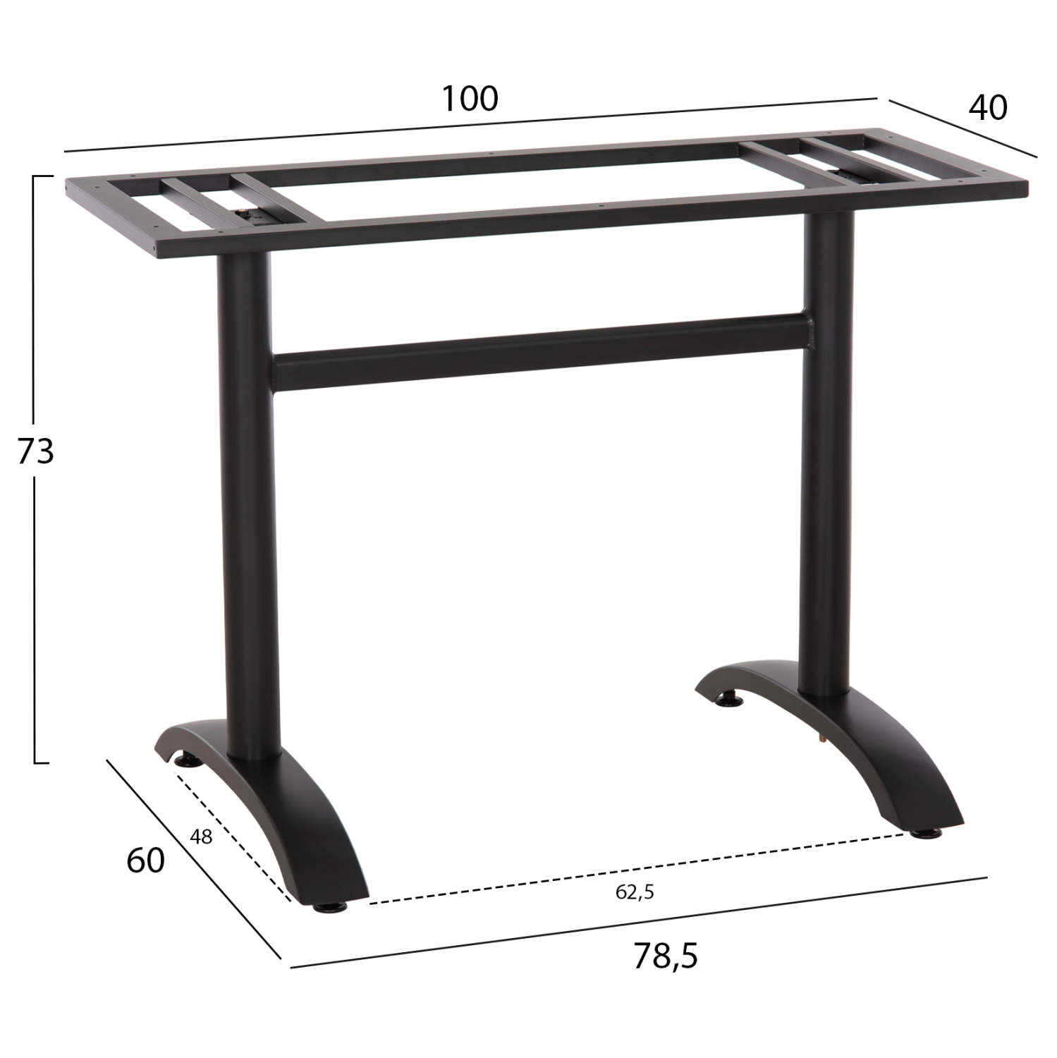 Η ΗΜ461.11 είναι βάση/πόδια για τραπέζι σε ΜΑΥΡΟ ΜΑΤ χρώμα. Αυτή η βάση είναι μεταλλική με δύο κολώνες (πόδια) τα οποία στηρίζονται σε αντίστοιχες μεταλλικές αψίδες. Το χαρακτηριστικό που κάνει αυτή την βάση ιδιαίτερα πρακτική είναι ότι στο κάτω μέρος των αψίδων διαθέτει ρυθμιστές ύψους (ρεγουλατόρους). Ιδανική πρόταση για συνδυασμό με επιφάνειες σχεδόν κάθε είδους, όπως βερσαλίτες, HPL, MDF, κτλ.