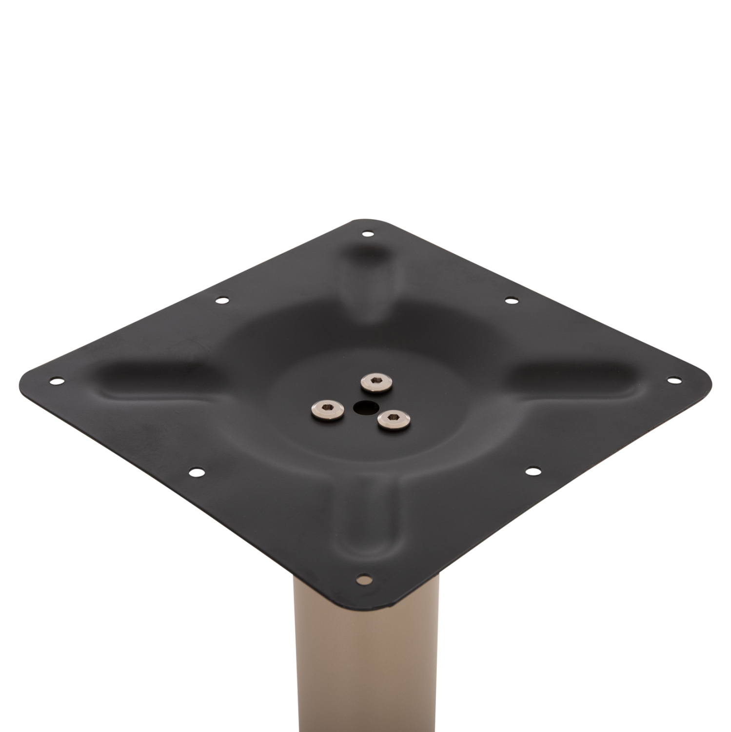 Η ΗΜ417.25 είναι βάση για τραπέζι bar σε ΚΑΠΟΥΤΣΙΝΟ ΜΑΤ χρώμα. Διαθέτει μεταλλική κολώνα η οποία στηρίζεται σε μια βαριά μαντεμένια 4-νυχη μεταλλική βάση. Το καπάκι που θα διαλέξετε στηρίζεται σε μια μεταλλική τετράγωνη επιφάνεια, με αποτέλεσμα να μπορεί να δεχθεί τόσο στρογγυλά καπάκια, όσο και τετράγωνα. Επίσης, στο κάτω μέρος της διαθέτει ρυθμιστές ύψους (ρεγουλατόρους). Ιδανική πρόταση για συνδυασμό με επιφάνειες σχεδόν κάθε είδους, όπως βερσαλίτες, HPL, MDF, κτλ.