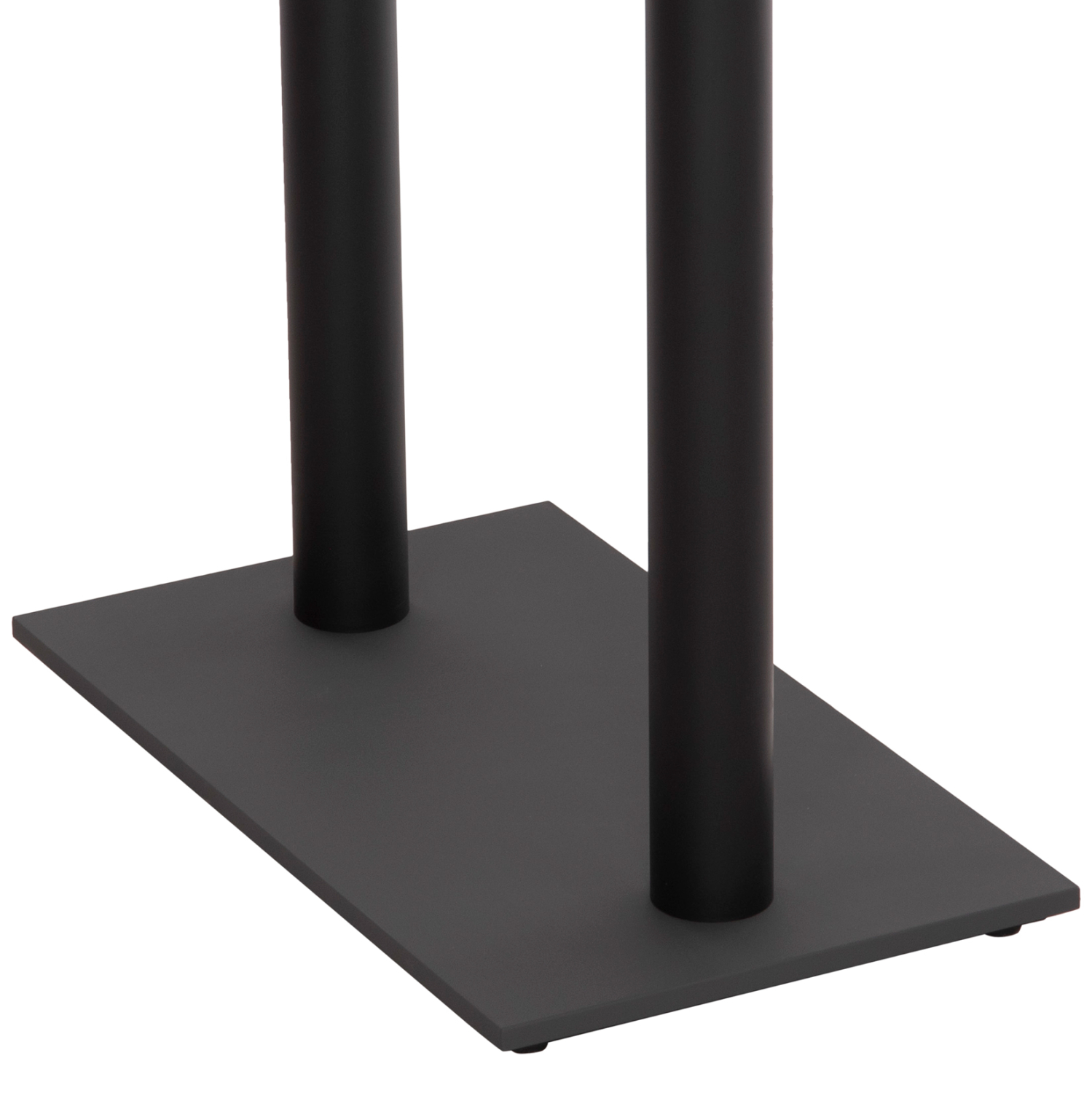 Η ΗΜ480.01 είναι βάση για τραπέζι bar σε ΜΑΥΡΟ χρώμα. Αυτή η βάση είναι μεταλλική με 2 κολώνες οι οποίες στηρίζονται σε μια βαριά επίπεδη μεταλλική επιφάνεια. Επίσης, στο κάτω μέρος της διαθέτει ρυθμιστές ύψους (ρεγουλατόρους). Ιδανική πρόταση για συνδυασμό με επιφάνειες σχεδόν κάθε είδους, όπως βερσαλίτες, HPL, MDF, κτλ.