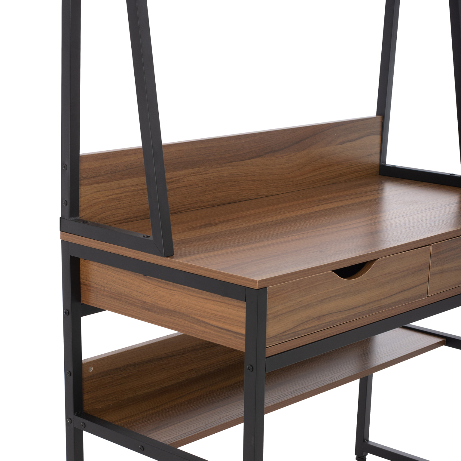 Το γραφείο TANAYA είναι μια πρακτική και όμορφη πρόταση, τόσο για το σπίτι, όσο και για τον επαγγελματικό σας χώρο. Ο ΜΑΥΡΟΣ σκελετός με το ΚΑΡΥΔΙ χρώμα στις επιφάνειες είναι ένας συνδυασμός που πραγματικά κάνει το έπιπλο να ξεχωρίζει στον χώρο. Το γραφείο αυτό διαθέτει δύο συρτάρια σε ΚΑΡΥΔΙ χρώμα και ένα ανοιχτό ράφι στο κάτω μέρος. Ωστόσο, το πιο σημαντικό κομμάτι αυτού του γραφείου είναι ότι διαθέτει μια μικρή βιβλιοθήκη τοποθετημένη με έναν επιπλέον σκελετό επάνω από την κύρια επιφάνεια. Αυτή η βιβλιοθήκη είναι ουσιαστικά ένα ράφι χωρισμένο σε 3 χώρους, και προσδίδει ευελιξία και ευκολία στην καθημερινή χρήση.