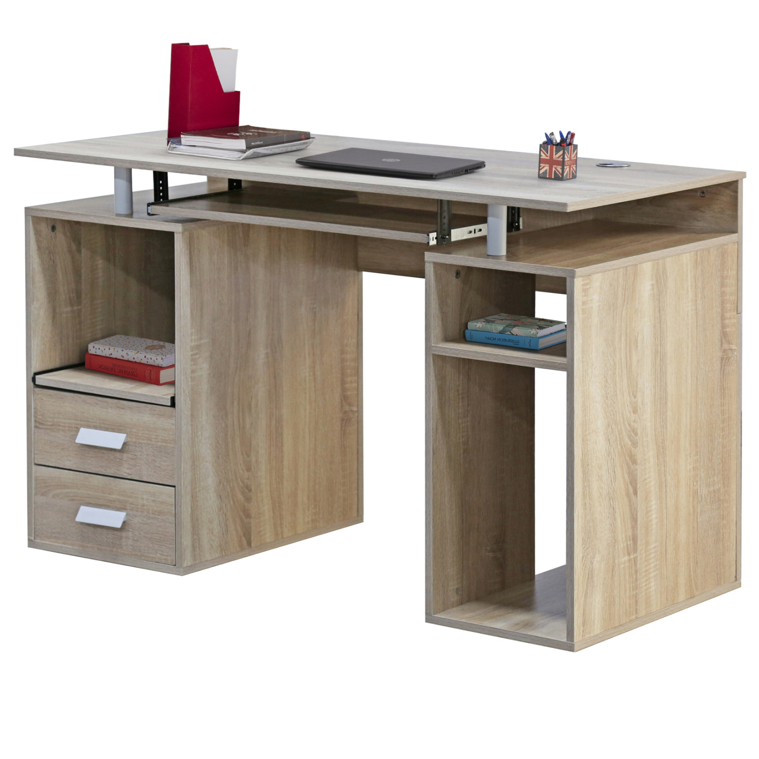 Το ΗΜ2026.02 είναι μια σύνθεση που διαθέτει δύο συρτάρια χαμηλά αριστερά και μια βολική συρταρωτή επιφάνεια ακριβώς επάνω από τα συρτάρια με αρκετό ύψος. Στο κέντρο και κάτω από την επιφάνεια του γραφείου υπάρχει μια συρταρωτή, επίσης, θέση για πληκτρολόγιο με δύο ανοικτούς αποθηκευτικούς χώρους δεξιά και αριστερά. Στην δεξιά κάτω πλευρά υπάρχει έτοιμη βάση για ηλεκτρονικό υπολογιστή με ανοιχτό το πίσω μέρος για την εύκολη σύνδεση των καλωδίων. Με λίγα λόγια, αυτό το έπιπλο καλύπτει όλες τις βασικές ανάγκες ενός σύγχρονου γραφείου.