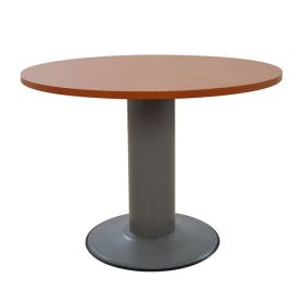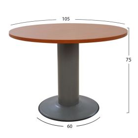 Επαγγελματικό γραφείο συνεδριάσεων με στρόγγυλη επιφάνεια, κατασκευασμένο από ανθεκτική μελαμίνη σε κερασί απόχρωση και μεταλλική βάση σε γκρι απόχρωση.