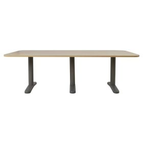 Επαγγελματικό γραφείο συνεδριάσεων, κατασκευασμένο από ανθεκτική μελαμίνη σε απόχρωση οξιάς και μεταλλικά πόδια σε γκρι απόχρωση.