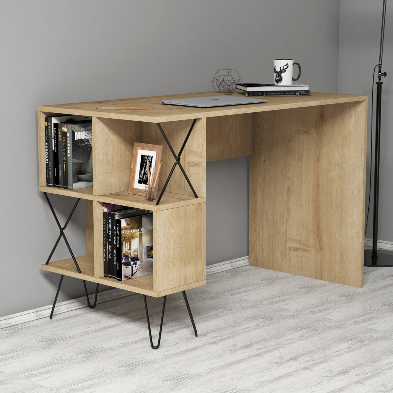 Το γραφείο ΗΜ9509.01 είναι μια ποιοτική πρόταση, κυρίως, για το γραφείο στο σπίτι. Το φυσικό ΟΑΚ χρώμα κάνει το έπιπλο να κυριαρχεί στον χώρο. Η εξαιρετική και πρακτική κατασκευή εξασφαλίζει ότι θα περνάτε ευχάριστα όλες τις ώρες της εργασίας σας, που γνωρίζουμε ότι είναι πολλές! Άλλωστε, το γραφείο είναι το βασικότερο έπιπλο σε ένα δωμάτιο και θα πρέπει να το επιλέξετε προσεκτικά. Το ΗΜ9509.01 διαθέτει 4 ανοιχτούς χώρους τοποθέτησης αντικειμένων σε σχήμα κύβων στην αριστερή πλευρά και φυσικά μια ικανοποιητικού μεγέθους επιφάνεια. Το design είναι μοντέρνο με αποτέλεσμα τα πόδια της αριστερής πλευράς να είναι μεταλλικά σε μαύρο χρώμα ενώ η δεξιά πλευρά στηρίζεται με πάνελ μελαμίνης.